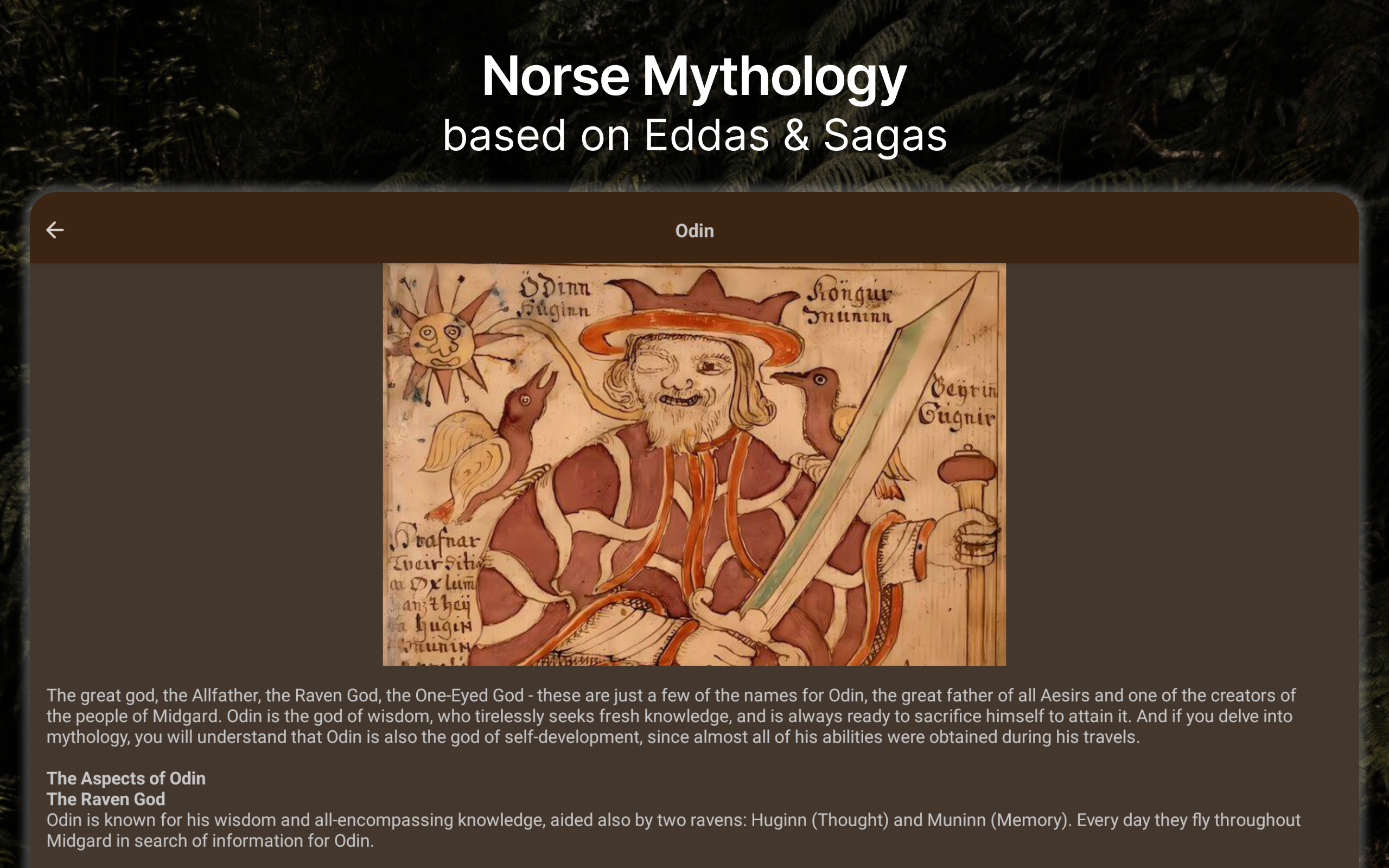 All the formulas, bindrunes, and sigils within the app are suitable for magical practice. With focused concentration and well-crafted spells, seemingly impossible feats can be achieved. However, since runes are deeply rooted in Norse pagan culture, seeking assistance from Norse gods can enhance the efficacy and duration of your spells. Hence, the app provides comprehensive descriptions of popular Norse gods. Regardless of whether you identify with heathen beliefs or not, Norse mythology forms the basis of numerous common beliefs and traditions.