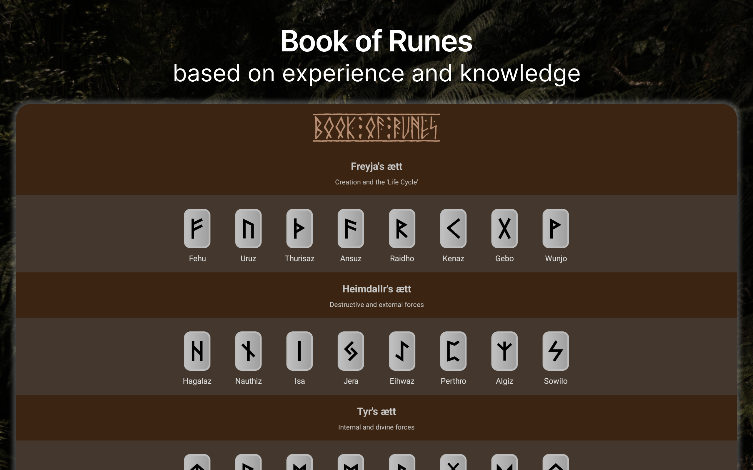 All descriptions of Elder Futhark runes, amulets, and talismans in the application are derived from books, personal knowledge, experiences, and observations of acquaintances. Each user may discover unique meanings on their individual journey.