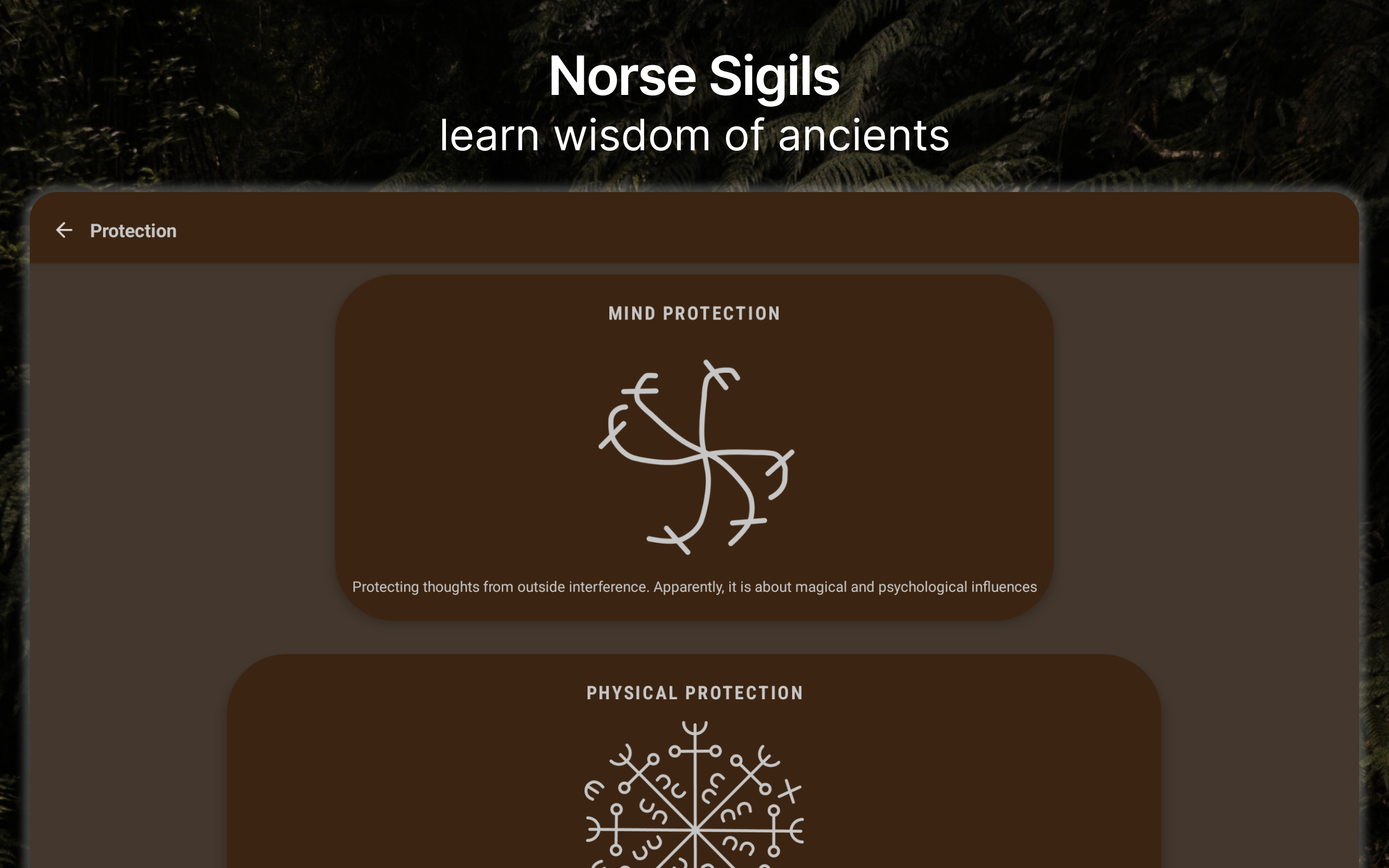 This app aims to guide beginners in learning about Norse pagan magic and aims to provide insights into the ancient beliefs where magic was an integral part of life. Vikings engraved runes and sigils on their ships and bodies, believing it would shield them from storms at sea and enemy attacks.