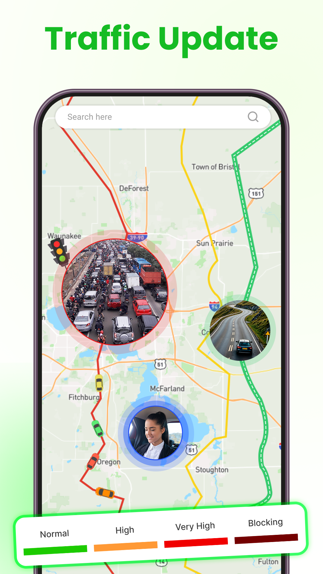 A Live Traffic Map delivers real-time traffic status and alerts concerning ongoing traffic conditions.