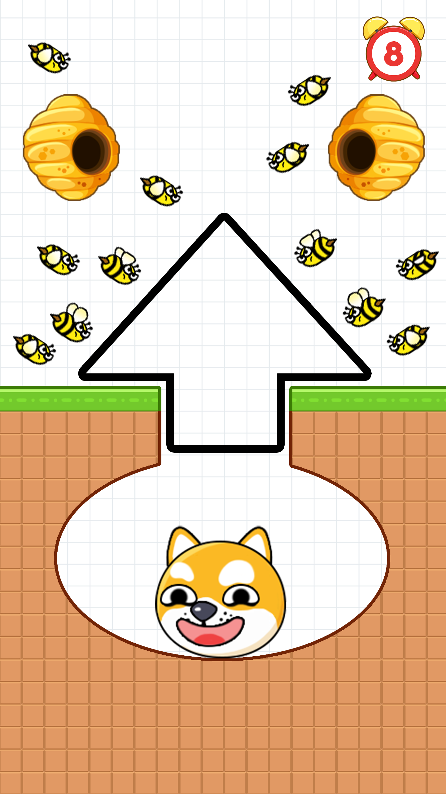 Malicious bees have emerged with intentions of stinging him. Your sole strategy to rescue the dog involves creating a barrier by drawing a line to fend off those bees.