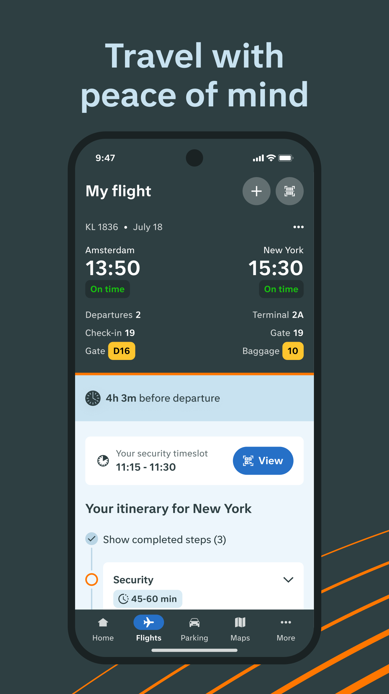 Navigate through Schiphol Airport with ease and stay updated on flight information.