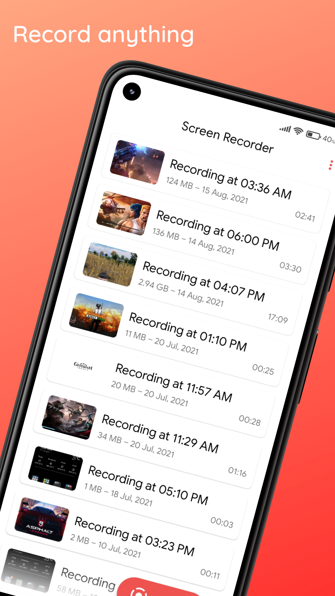 Are you in search of a dependable and high-quality screen recording application for your Android device? Your search ends here! 🙌🙌Our app enables you to capture both system audio and microphone audio, allowing you to document everything you need effortlessly. Additionally, with adjustable settings, you can select the resolution, frame rate, and bit rate that suits your preferences. Enjoy clean and professional recordings without any watermarks!!! 🙌🙌Participate in our beta program to be among the first to explore new features and contribute to the enhancement of our screen recorder!