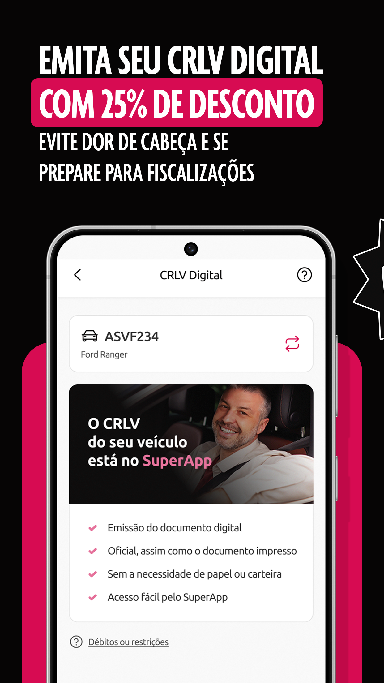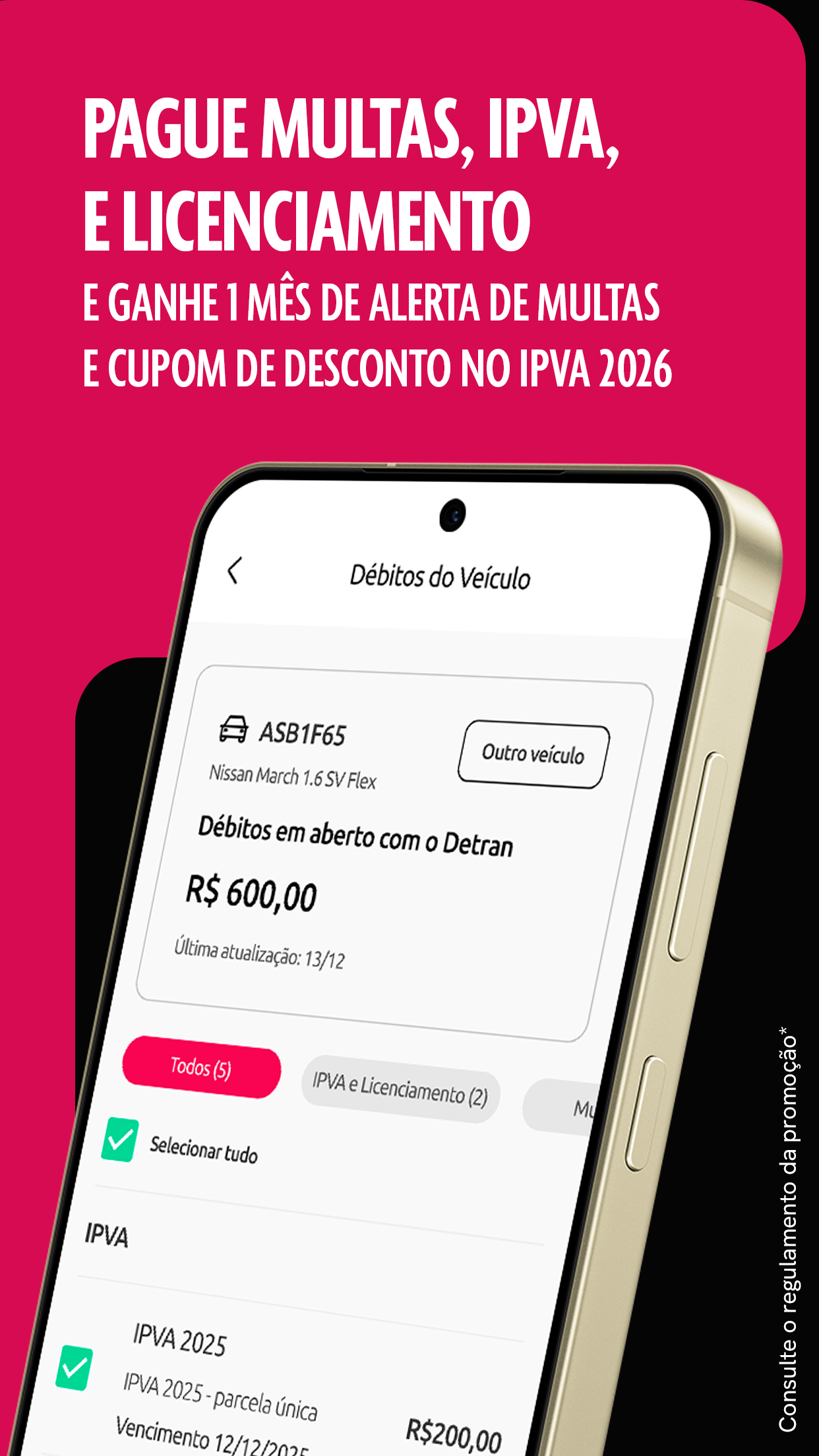 - Pay fines, licensing, and IPVA in up to 12 installments