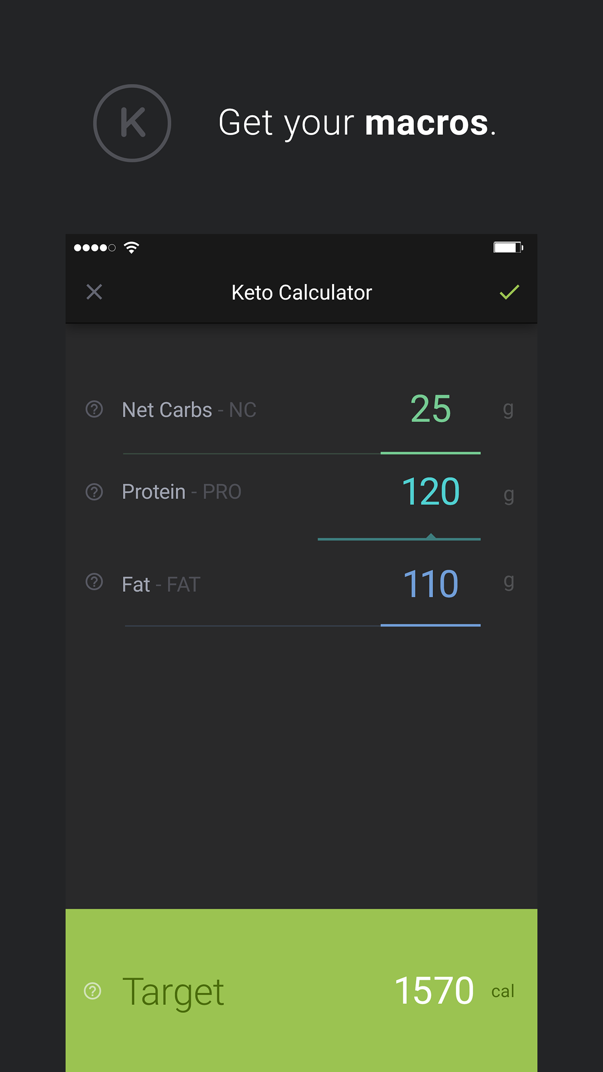 Ketosis is initiated by running out of carbs to process for fuel. It's the absolute grams of carbs that does this, not a percent of your overall diet. Your protein is set by the app as a ratio to your estimated lean body mass (not as a percent of total food consumed). Fat intake should vary based on your hunger level and shouldn't be treated like a goal you need to reach. Senza provides the fat macro and daily calories as ceilings to stay below for weight loss.