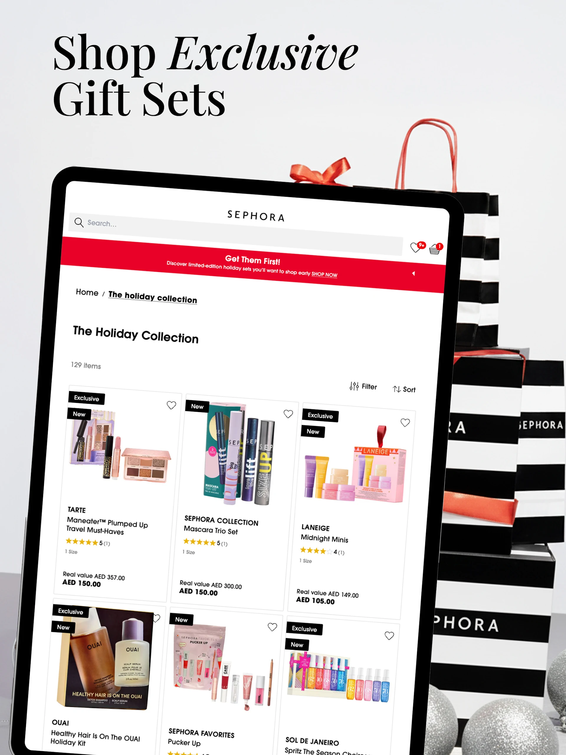 Immerse yourself in the beauty universe of Sephora, where a diverse range of makeup, skincare, haircare, and fragrances awaits your discovery. Since our arrival in the Middle East in 2007, we have transformed the beauty landscape with our unique retail philosophy, which emphasizes inclusivity and enjoyment in beauty. With an outstanding assortment of over 300 carefully selected brands, including Rare Beauty, Tarte, Drunk Elephant, Tatcha, Supergoop, Glow Recipe, Ilia, K18, Glossier, Laneige, and Makeup by Mario—many available exclusively at Sephora.
