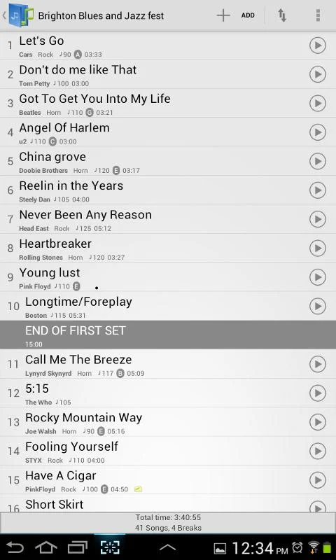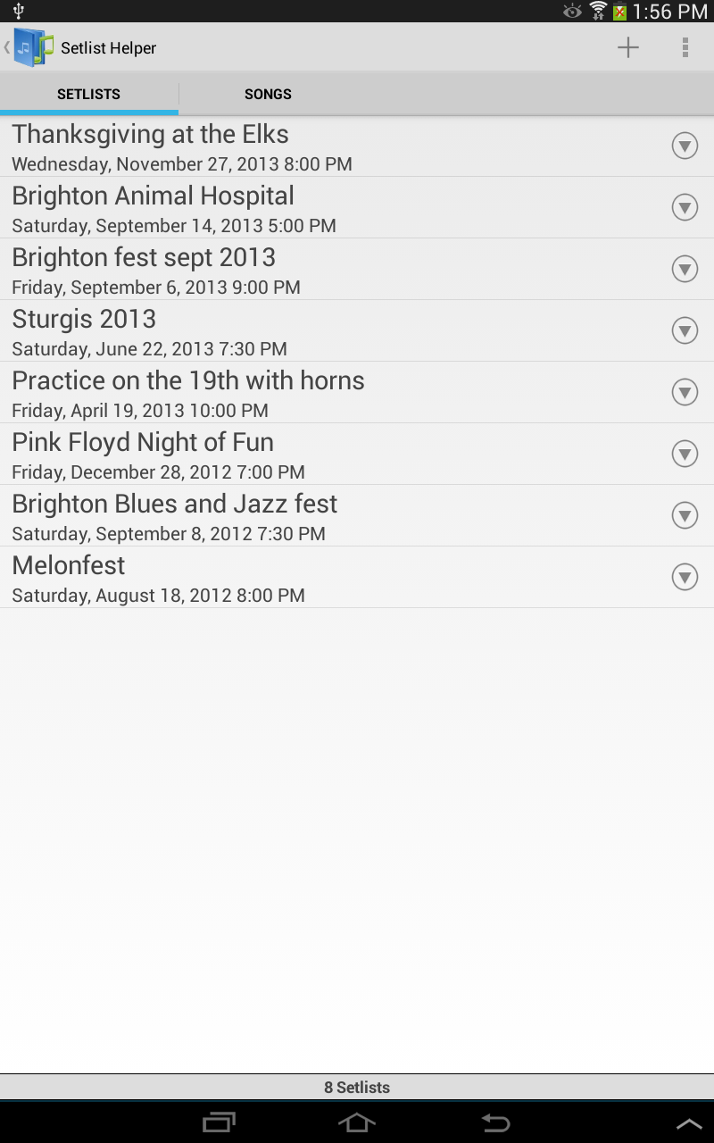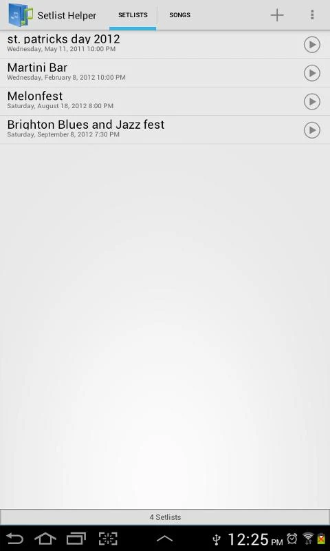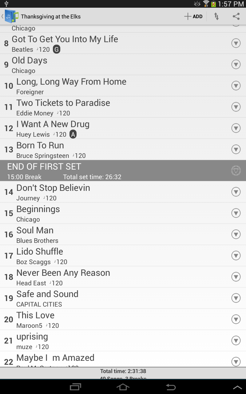 (2)Touch the plus button. This will bring up the Setlist add page.