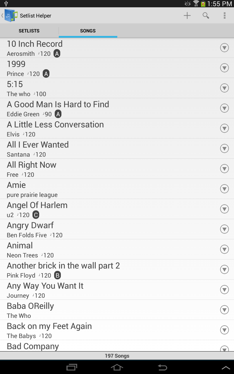 1.Songs – Shows you the list of all the songs in your repertoire.