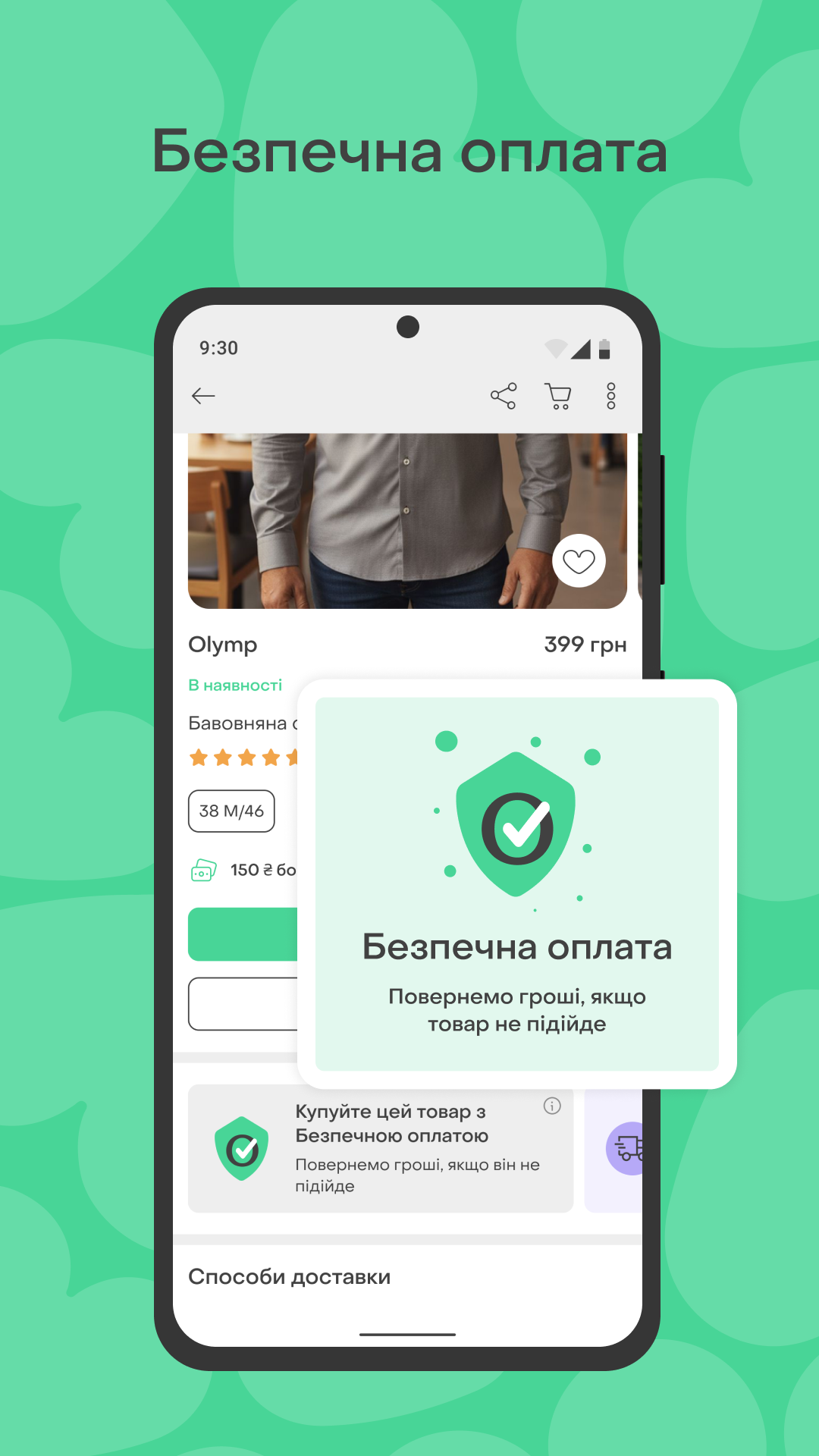 5. Now you need to agree on the payment method (payment by card, partial payment or cash on delivery). We do not advise you to make a full prepayment to sellers who are new to Shafi, have less than 5 reviews or simply cause you insecurity. In this case, please choose Secure Payment, if it is available from the seller.
