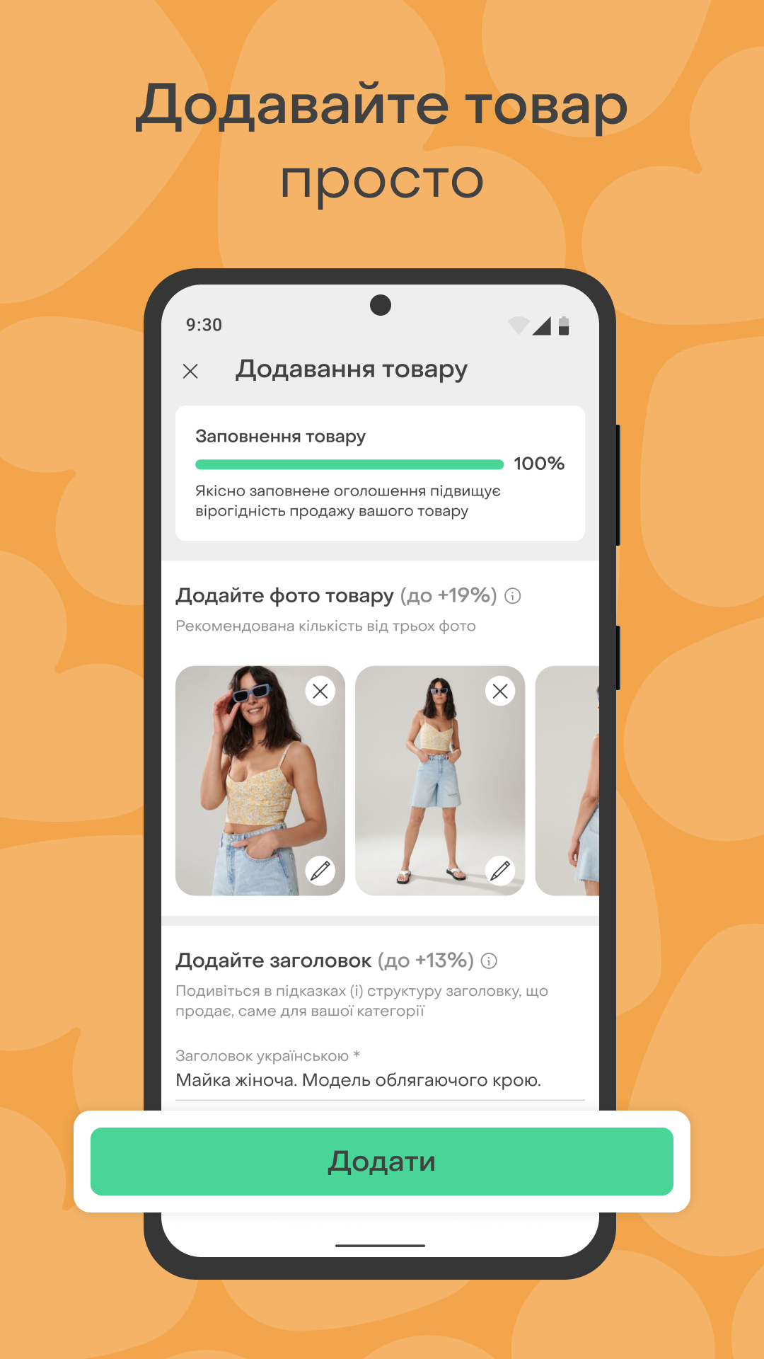 Easily create ads - simply take a photo of the item and upload it with a price, title, and description.