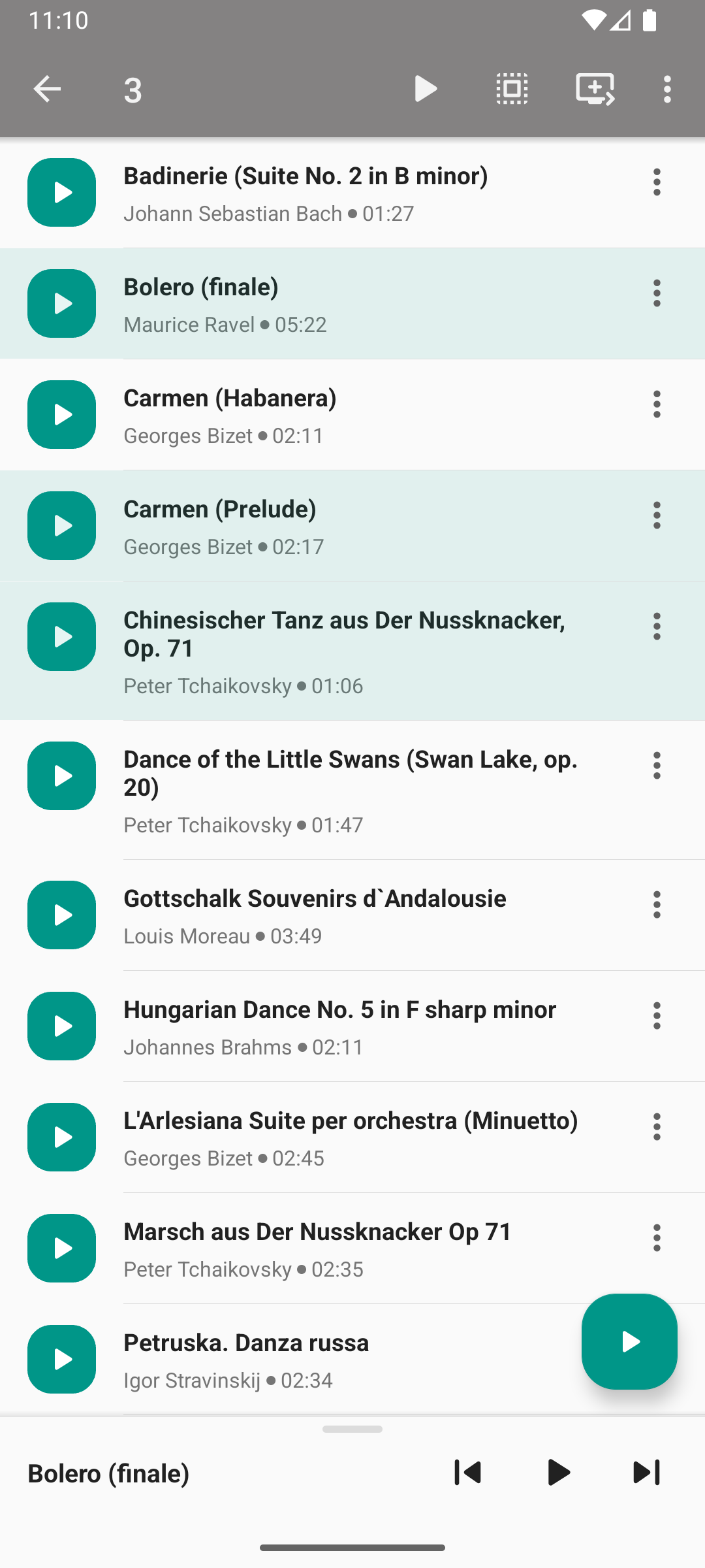 • Tap any track, → it starts; album art and progress sit at the bottom.