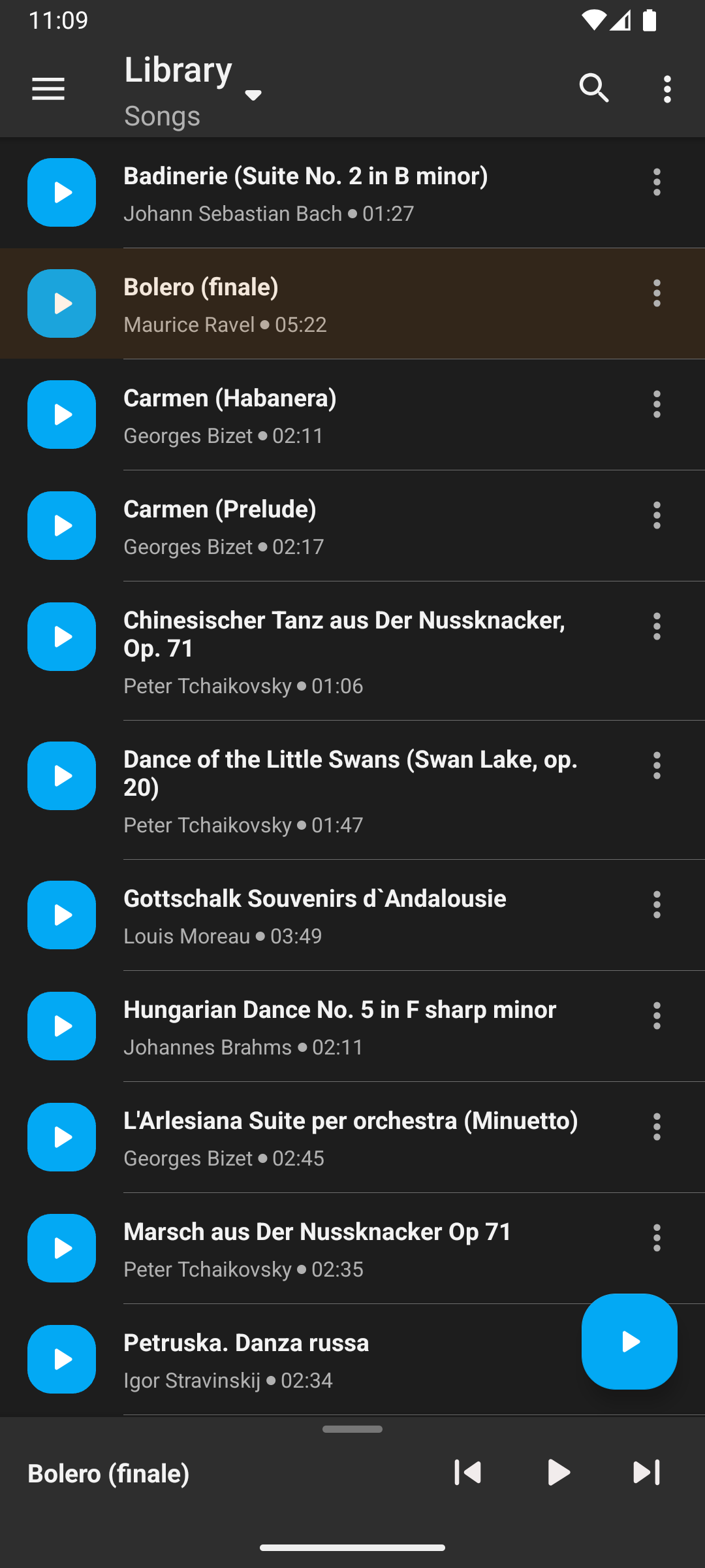• Shows your music collection organized by tracks, folders, artists, or albums.