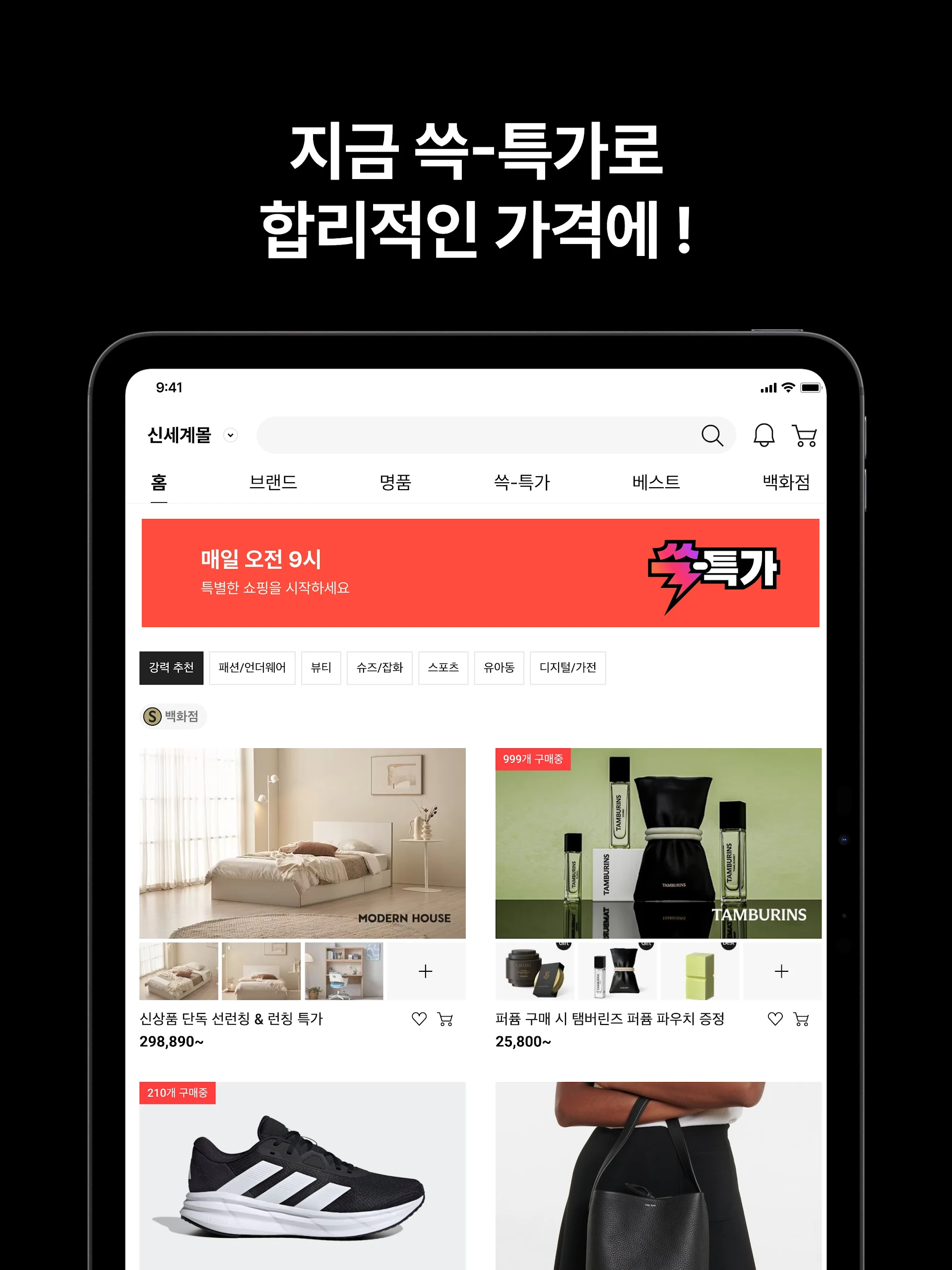 Discover representative special discounted products recommended confidently by Shinsegae Mall MDs every morning at 9 o'clock.