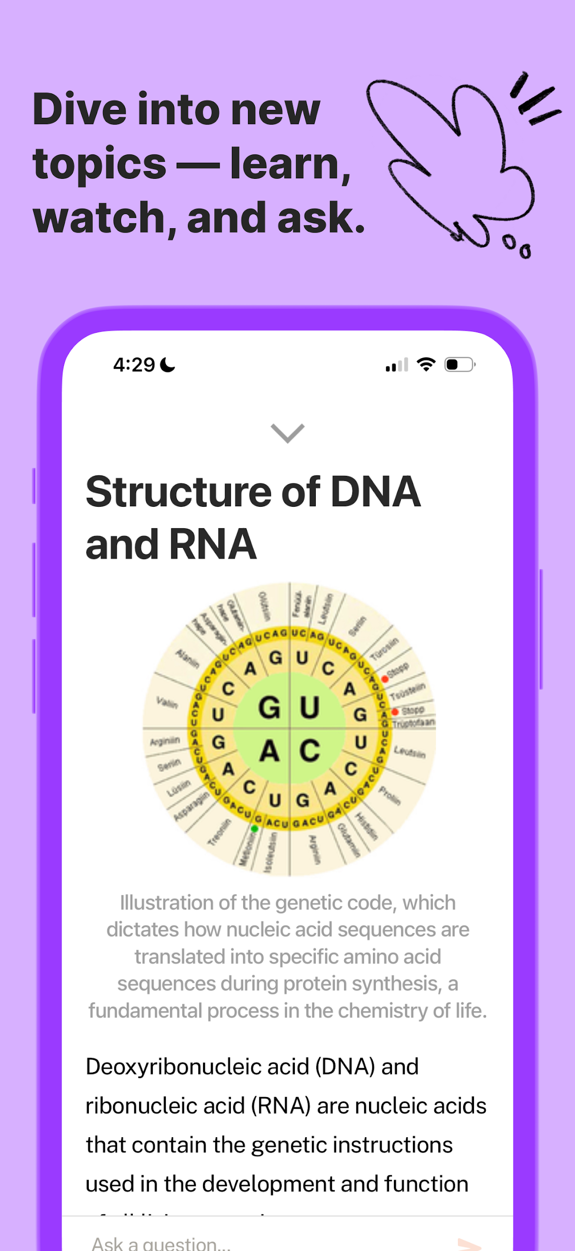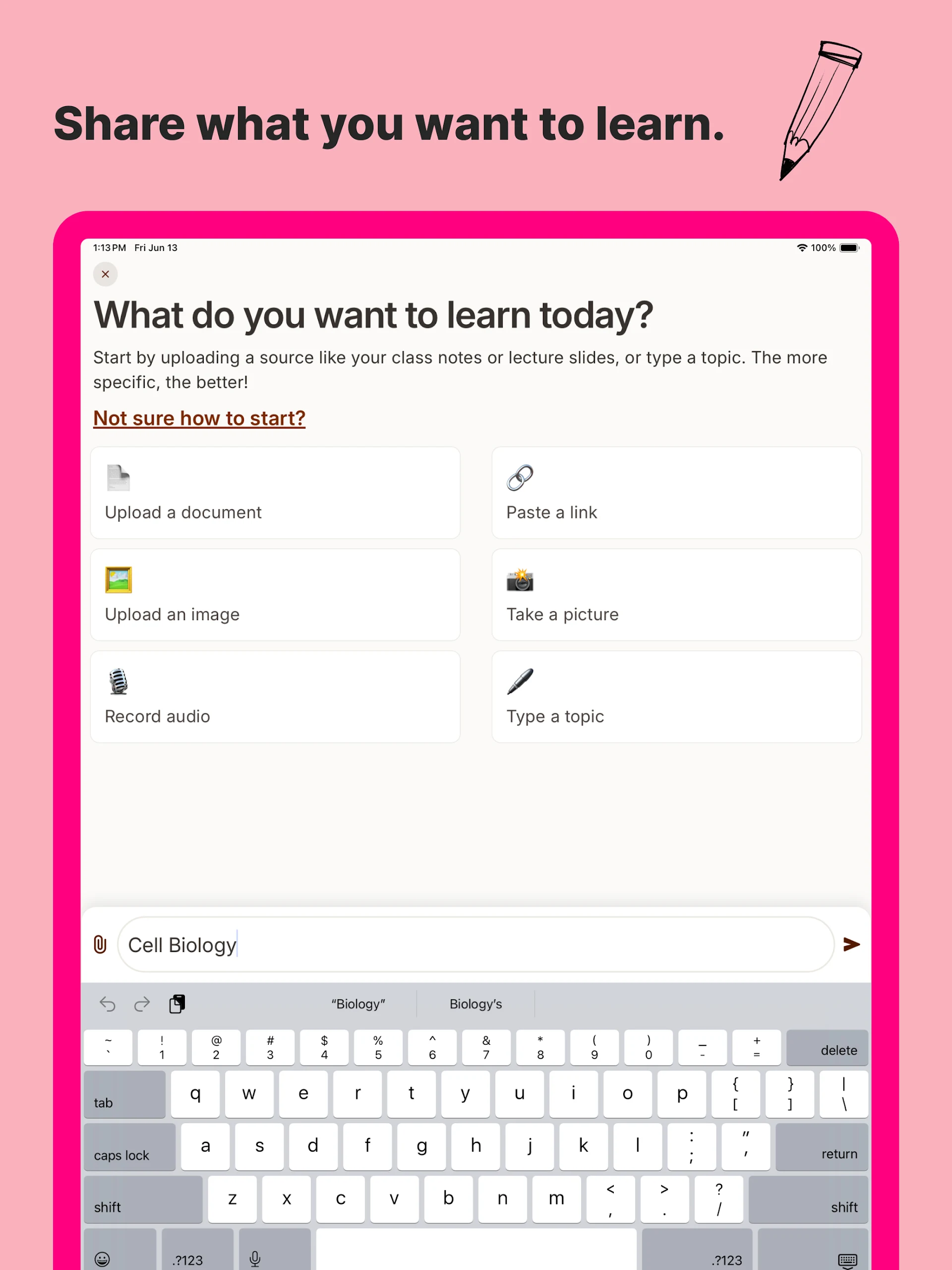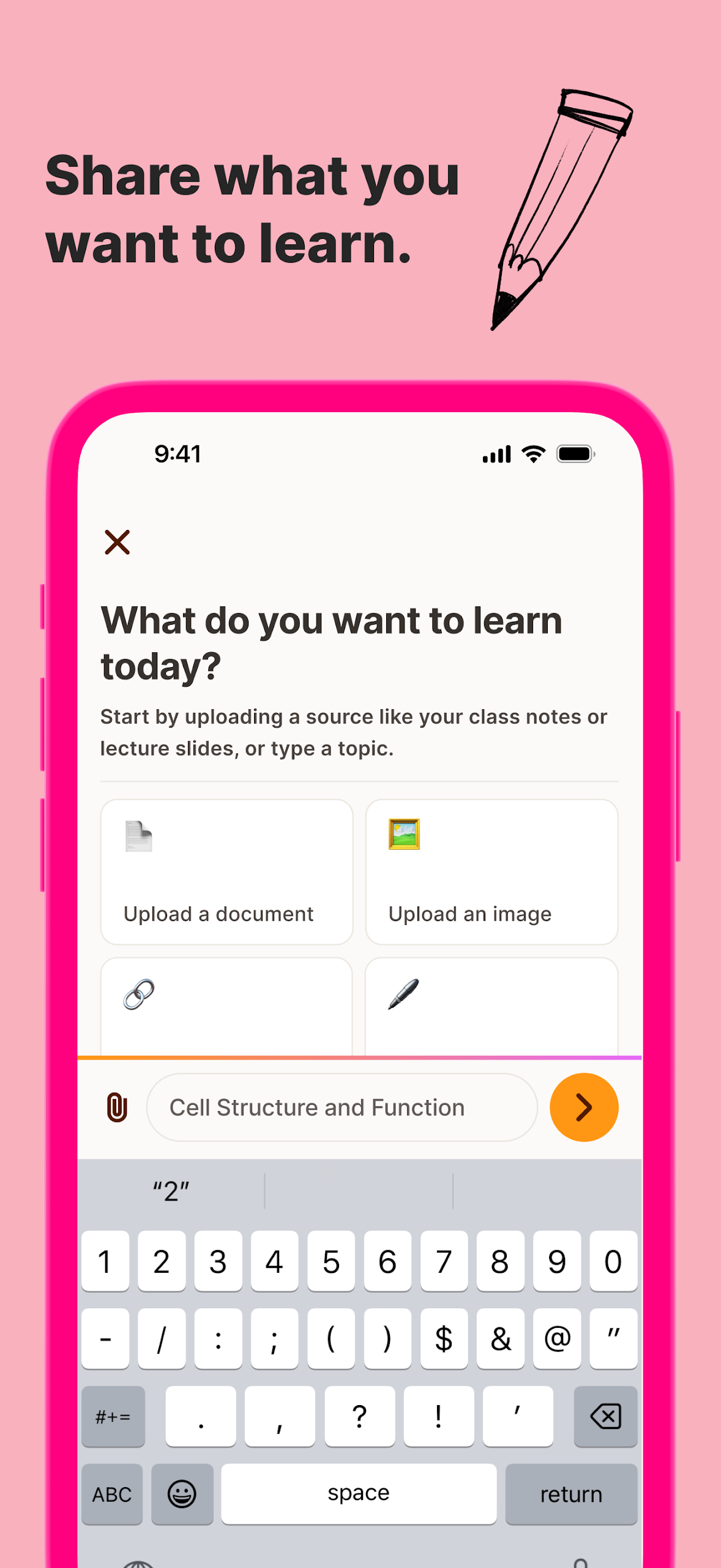 All you have to do is indicate what you'd like to learn—be it a subject, notes, a document, a problem, a video, or any other resource.