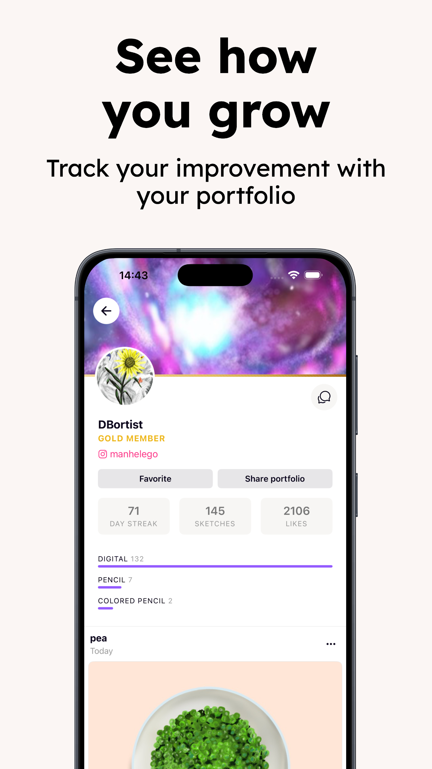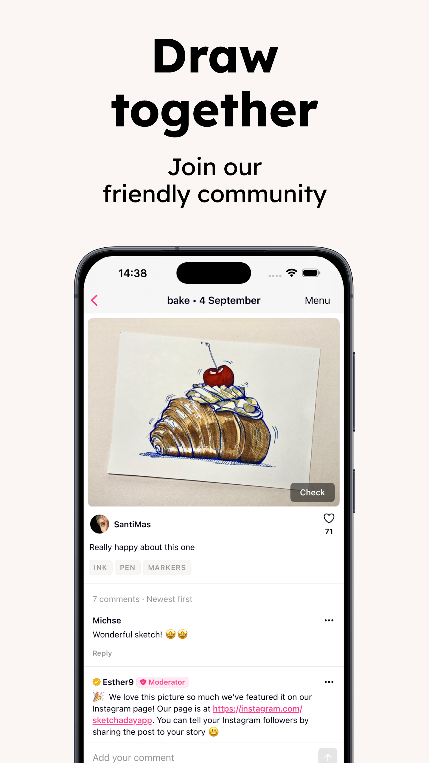 • You can engage with other users by commenting on their sketches, asking for techniques, giving compliments, or just having fun!
