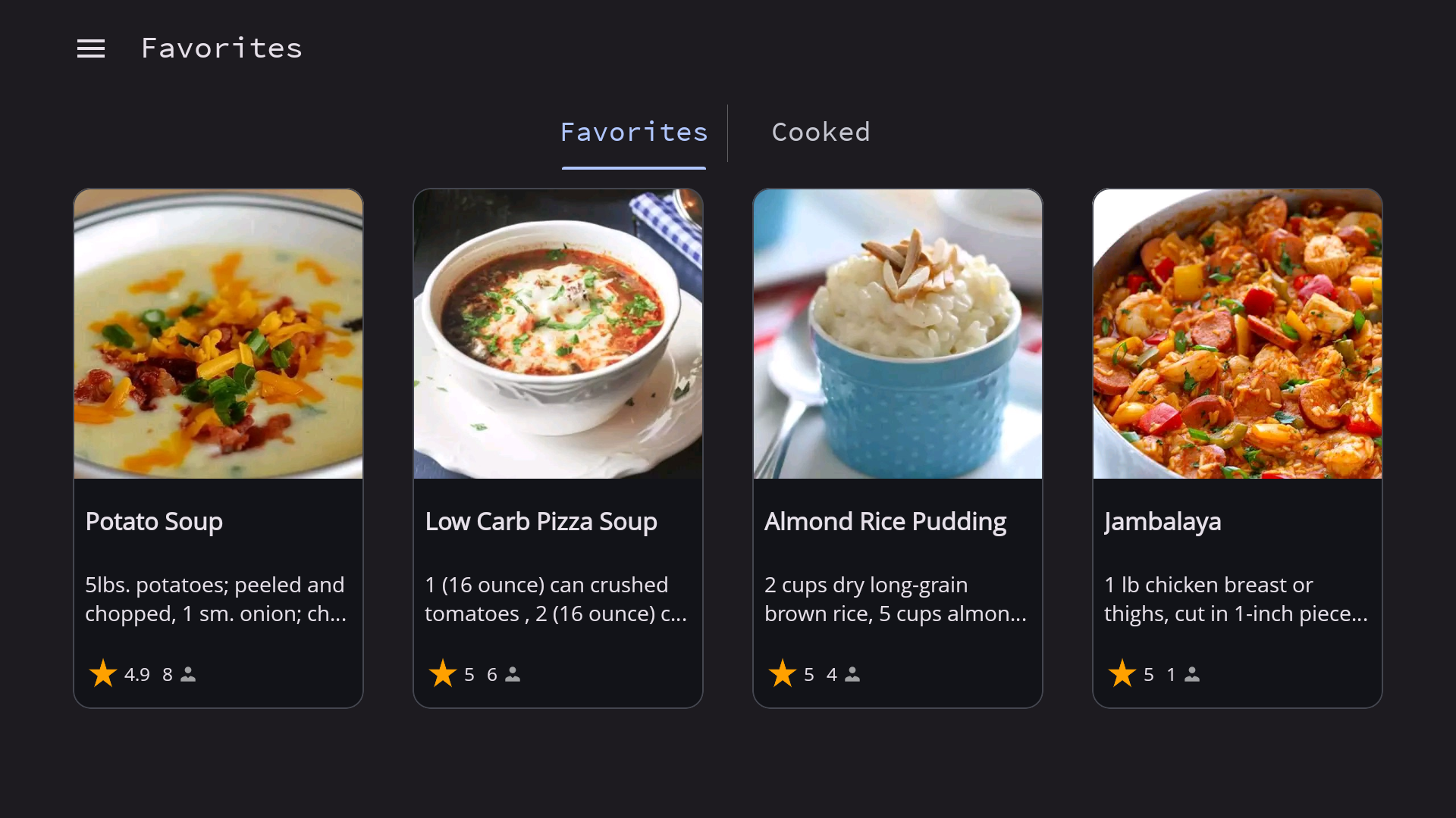 Favorite Recipe Saving: Mark your preferred recipes to easily retrieve them later in your favorites section.