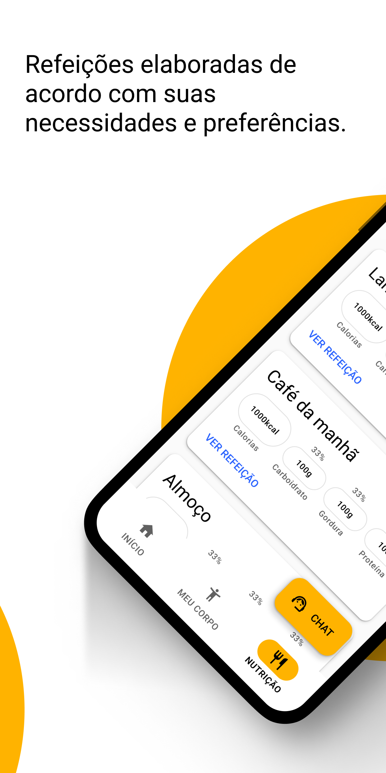 Have a completely personalized meal plan, made after a consultation with a nutritionist, to help you reach your goals with a healthy diet, whether for muscle hypertrophy or weight loss.