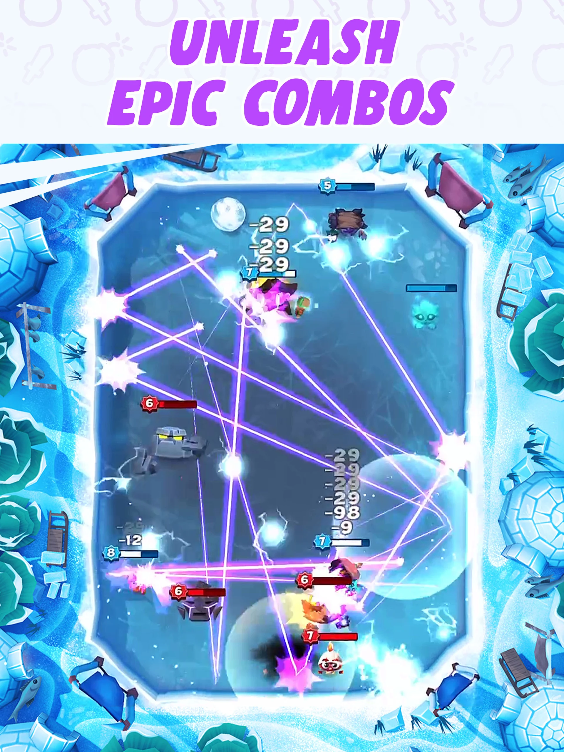 Engage in epic hero battles with unique abilities and strategies.