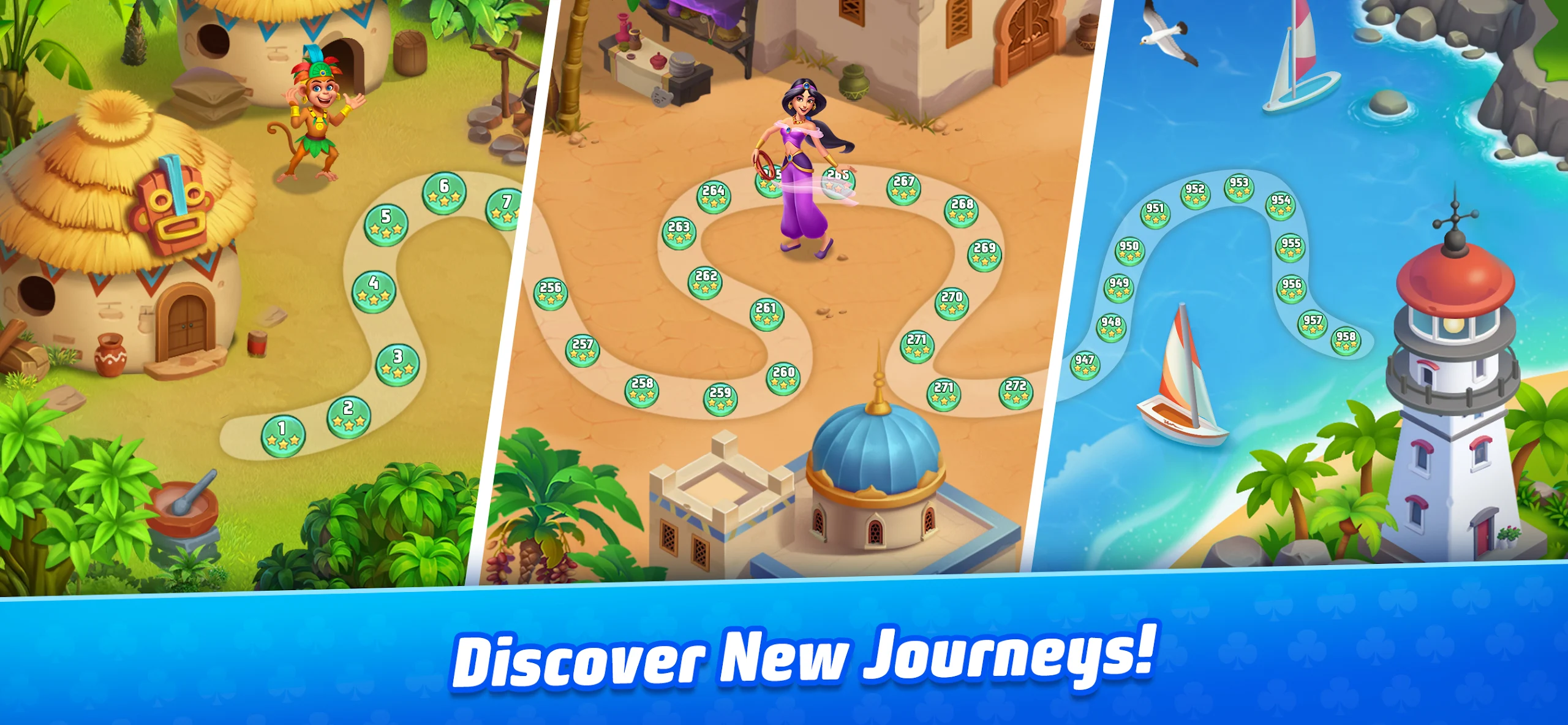 Embark on a tropical solitaire adventure, conquering over 2100 levels