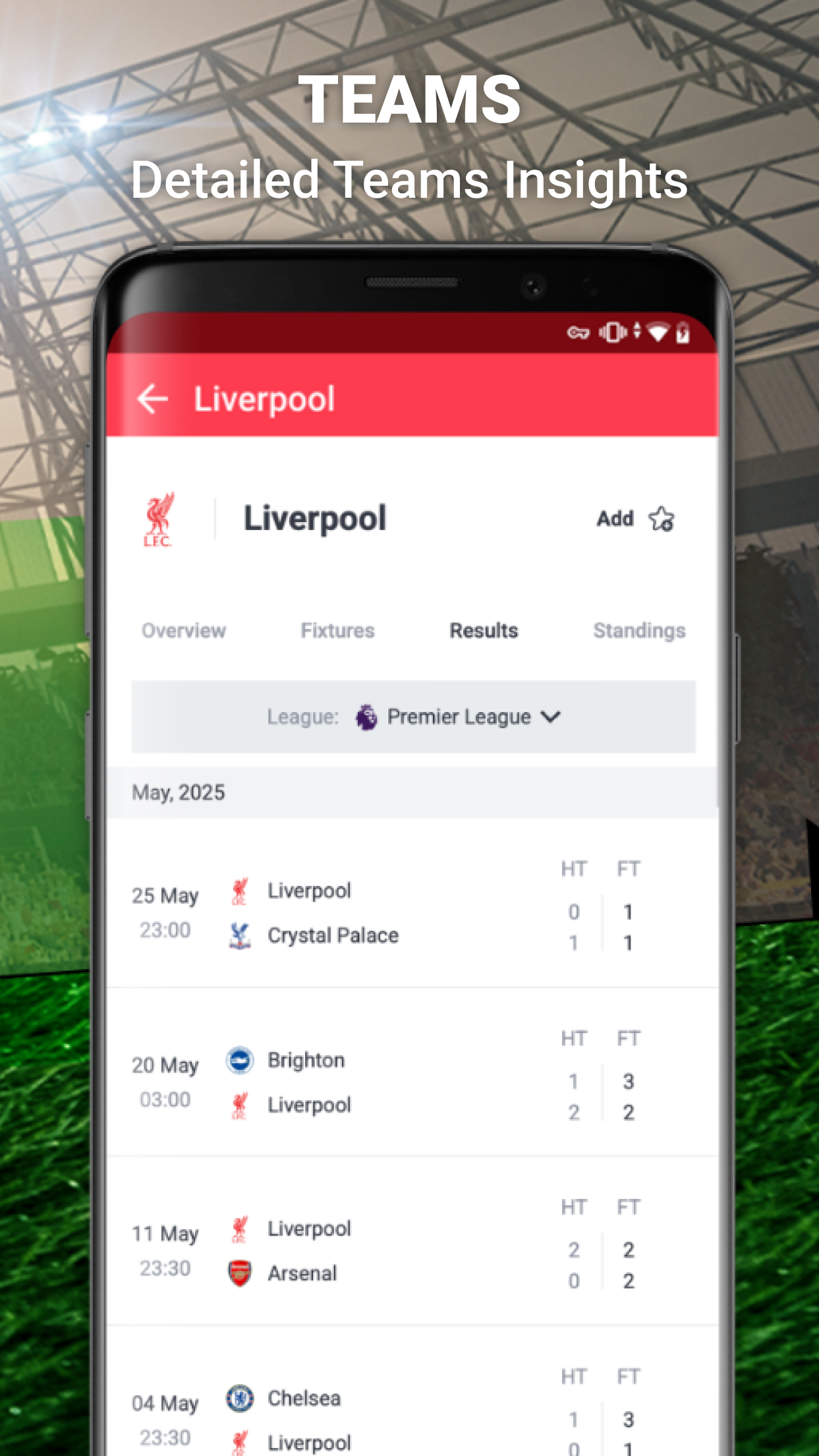 Covers Premier League, Champions League, Serie A, La Liga, Bundesliga, and much more.