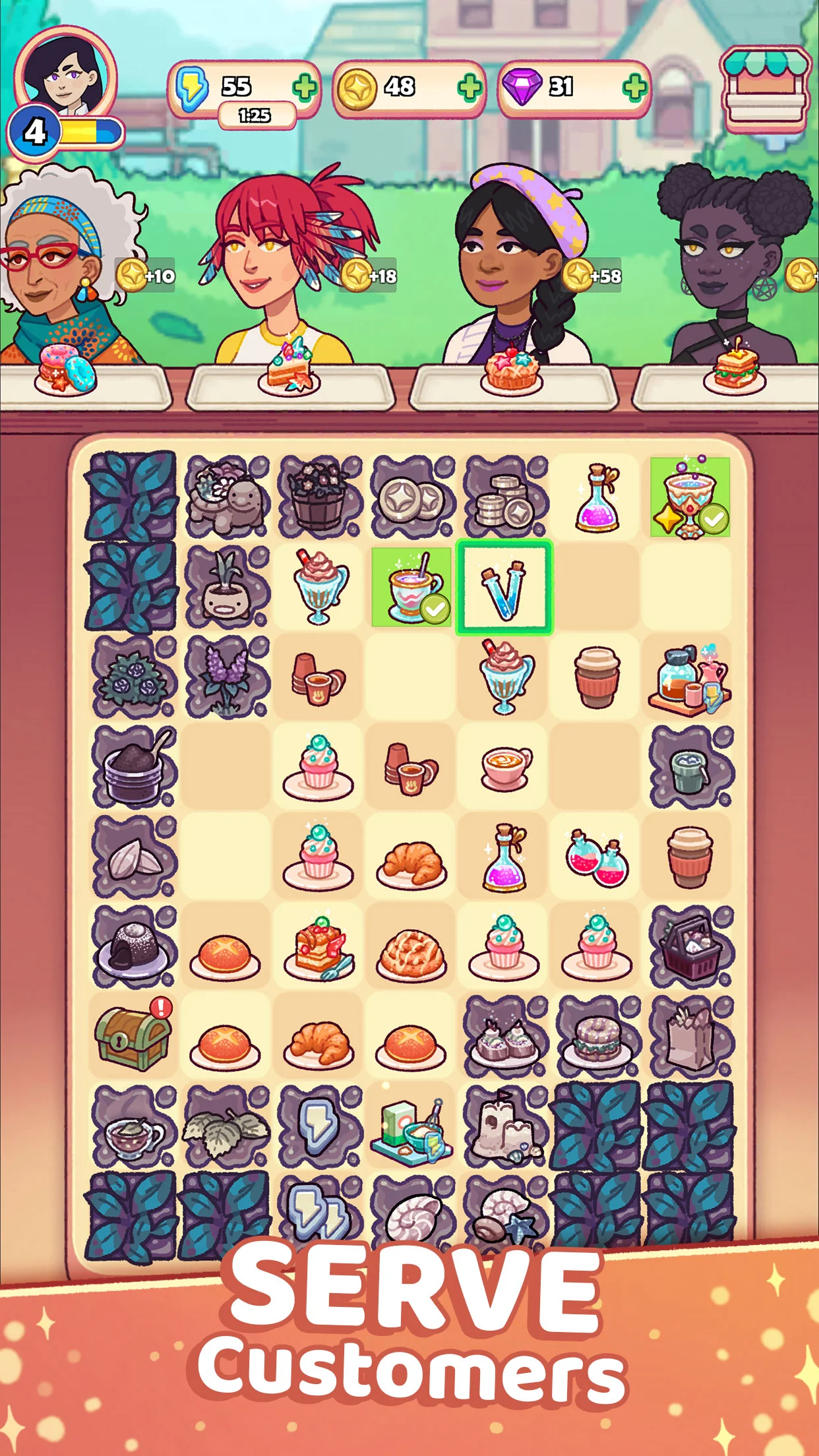 🧩 Tactical Gameplay: Shape your cafe's fate by moving items from your board to partially fulfill orders. This tactical aspect allows for greater control over how you arrange your merge grid. Experience satisfaction as you create the ideal mix of strategy and enjoyment!