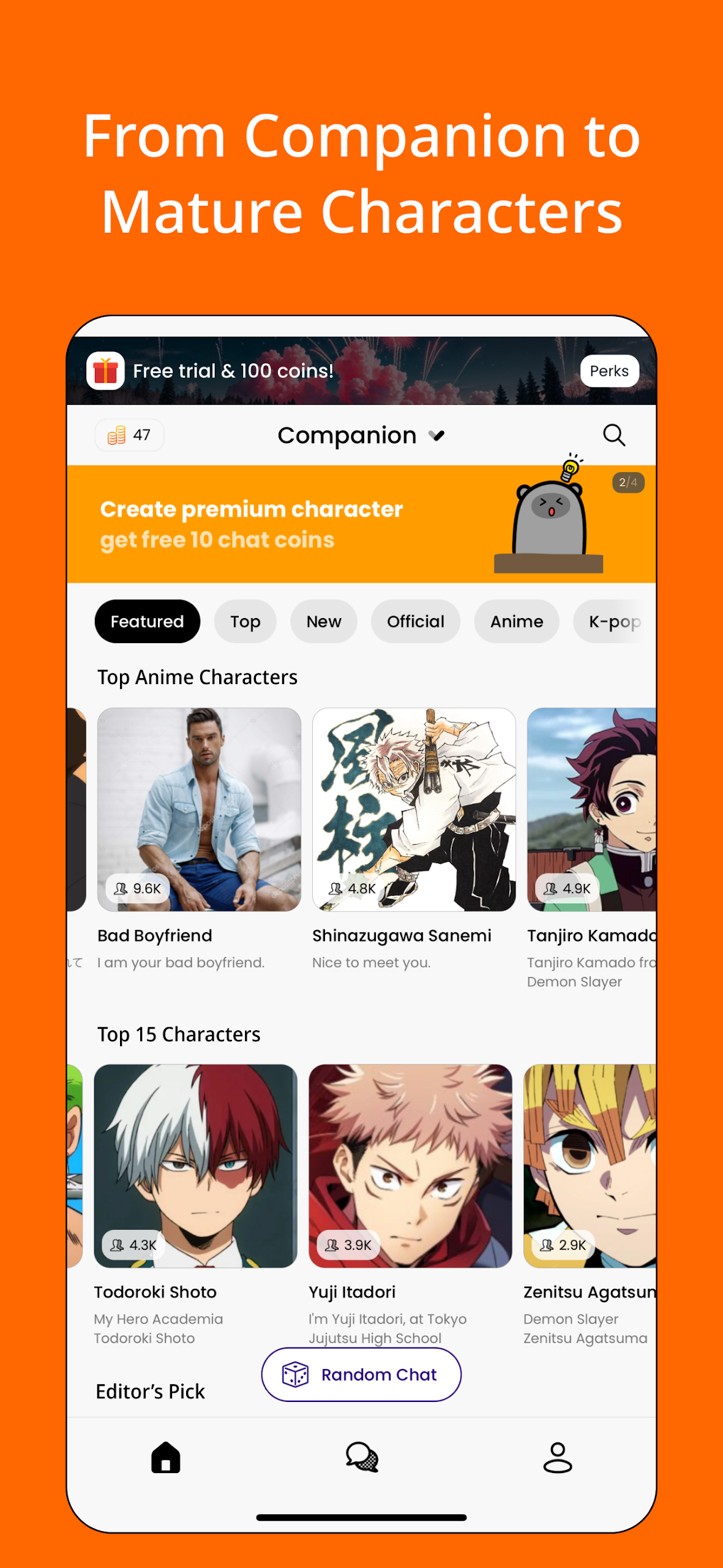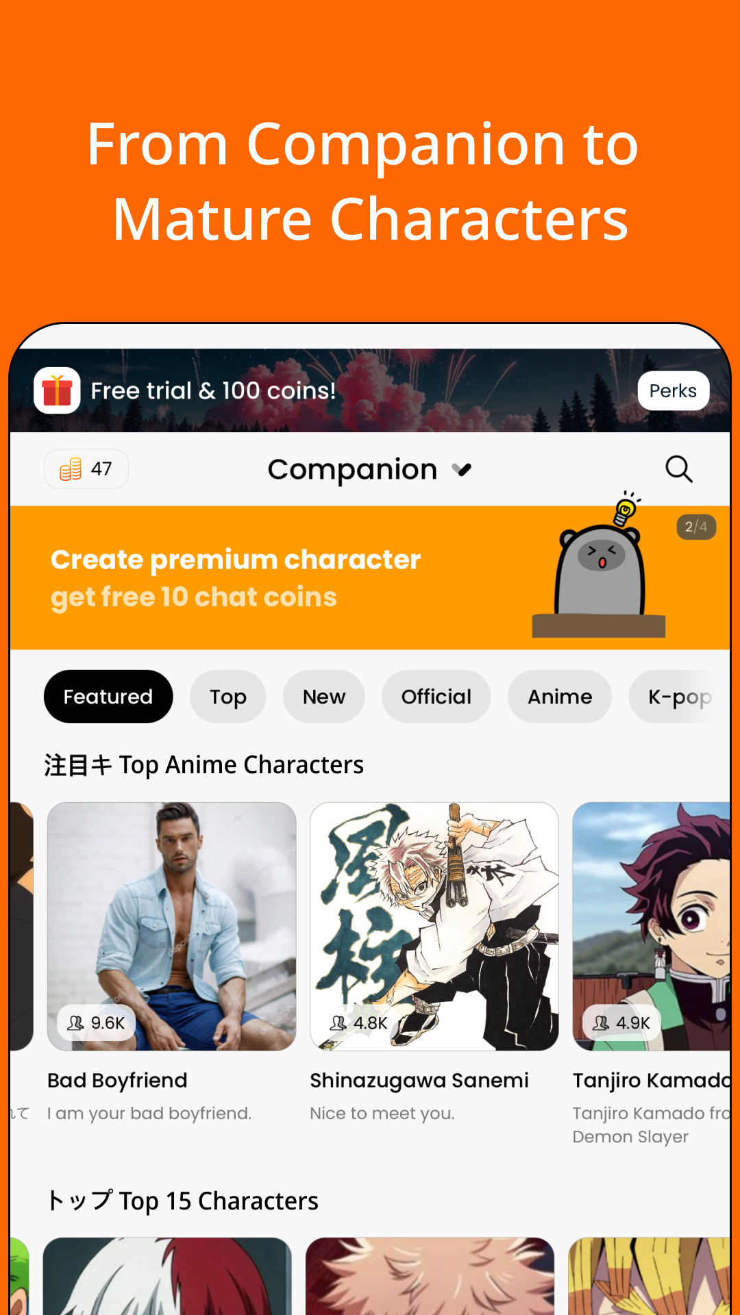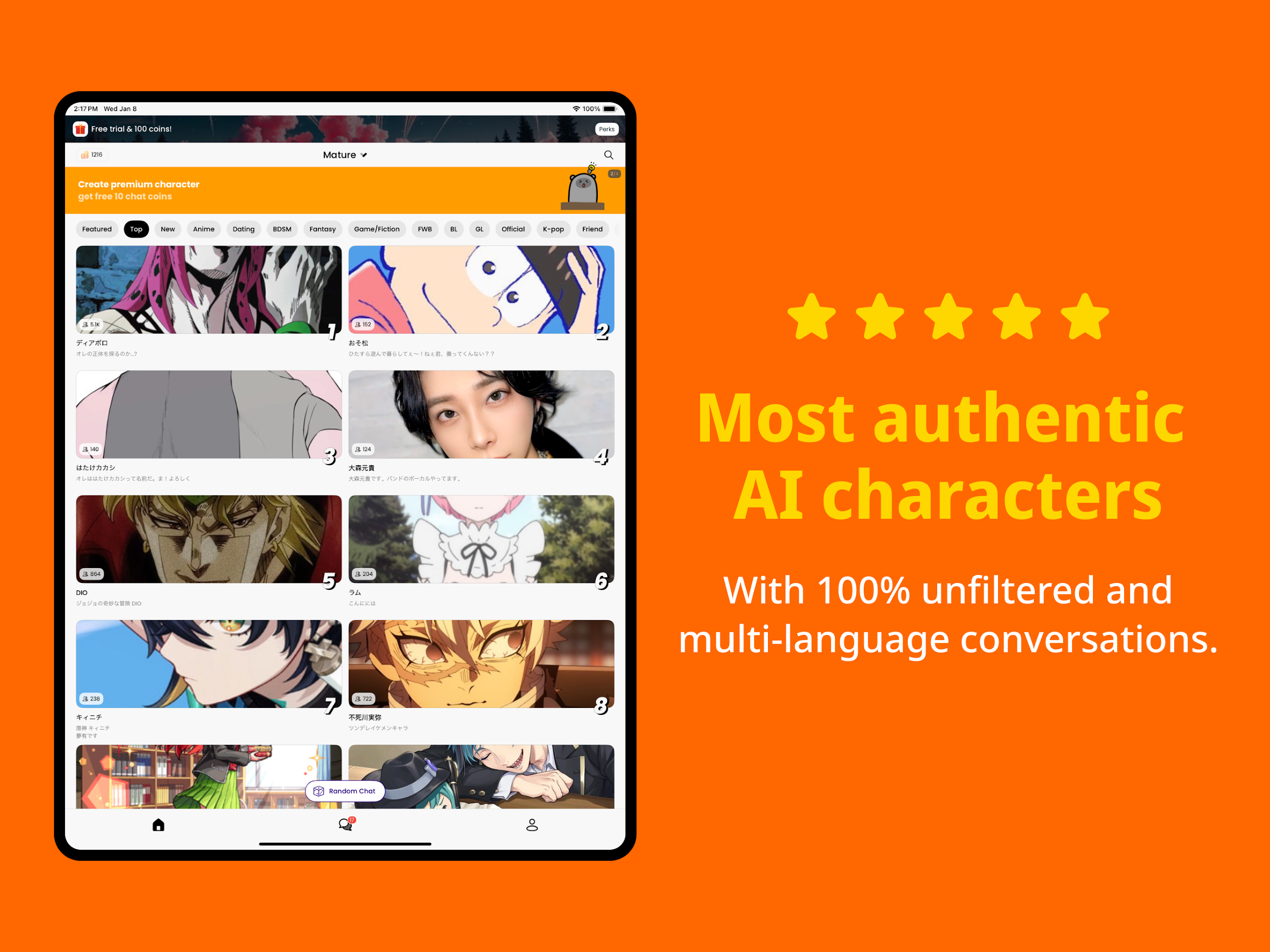 • Utilize chat coins to engage with premium characters and relish unfiltered discussions.