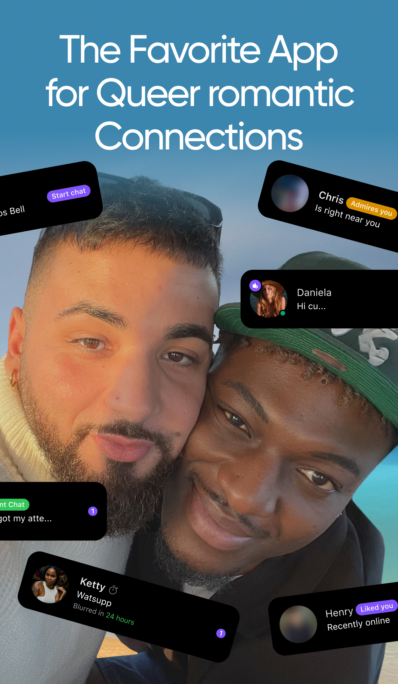 Connect with LGBTQ+ community, dates and friends. Unlimited chat and video calls.