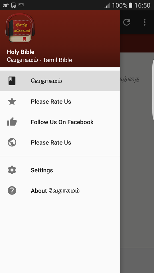 The Tamil Bible - Tamil Bible audio. We are pleased to introduce the Tamil Bible app for Android as a complimentary resource aimed at sharing the teachings of Jesus. Begin your day with the Tamil version of the Bible. This audio app is not merely another Tamil Bible study tool; it is tailored specifically for the Tamil-speaking community. Our goal is to keep you motivated and spiritually nourished daily with the words of God. This Android application provides a complete experience with both text and audio from the New and Old Testaments in Tamil. You can read and listen to God's word simultaneously. The user interface has been crafted for seamless navigation, making it straightforward to access all chapters of the Holy Bible in Tamil. We genuinely hope that this app will bring you joy. Engage with the Divine and Sacred Bible every day to deepen your faith and relationship with God progressively 🙂