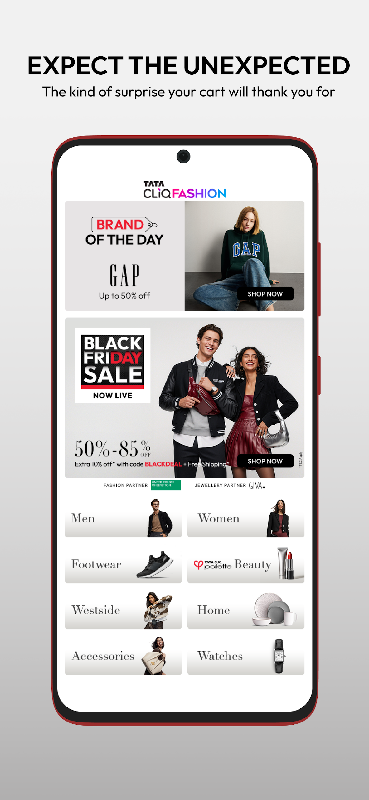 Access exclusive sales on the newest fashion trends, exquisite jewelry, handpicked accessories, smartwatches, and more, all through the Tata CLiQ app!