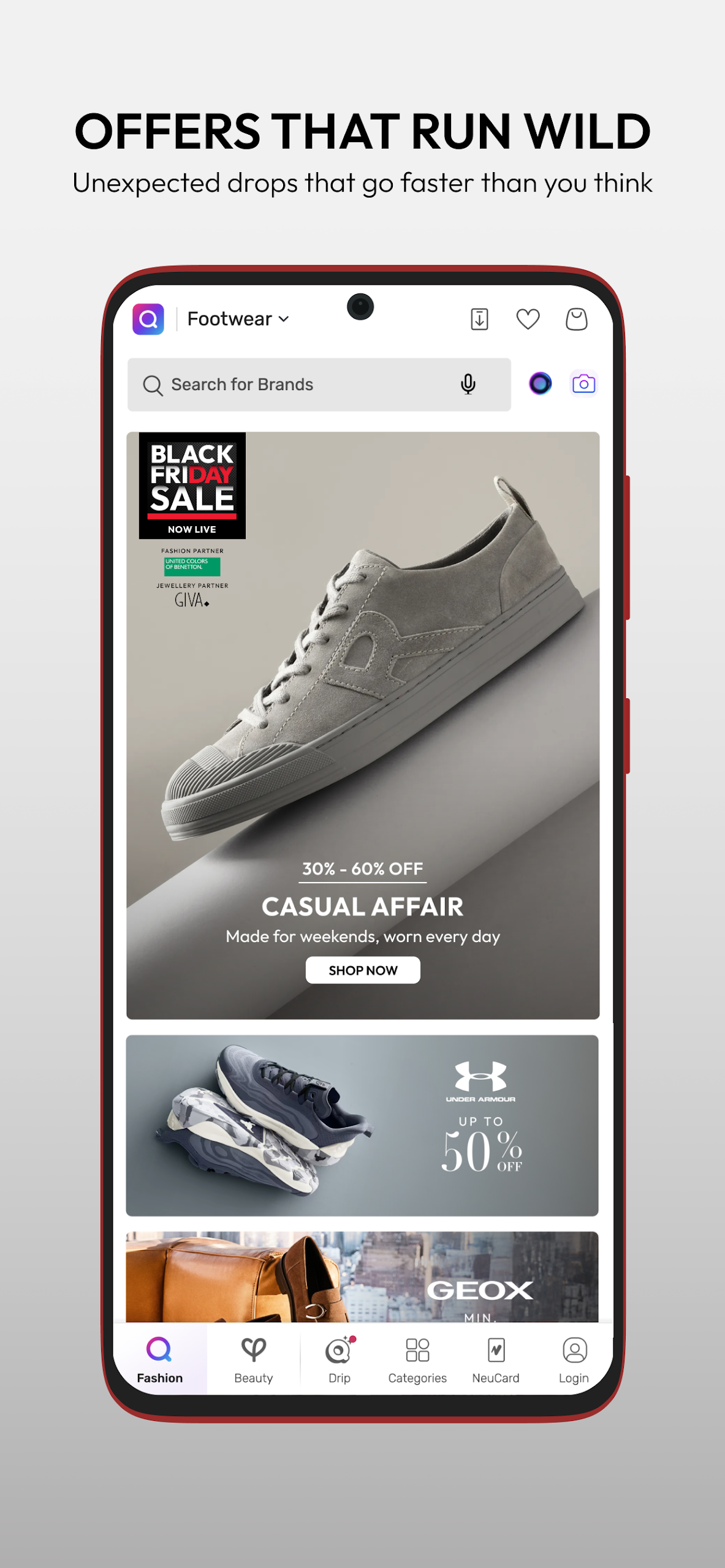 Prepare to seize the greatest sales and discounts! That's correct. Besides providing an extensive range of products, trends, and brands on any Indian online shopping app, we also present unparalleled offers and deals on authentic items. Discover exclusive discounts of up to 50% on fashion brands such as U.S. Polo Assn., BIBA, Tommy Hilfiger, PUMA, and up to 75% off on ethnic wear brands like BIBA, W, Jaipur Kurti, ensuring there's something for everyone.
