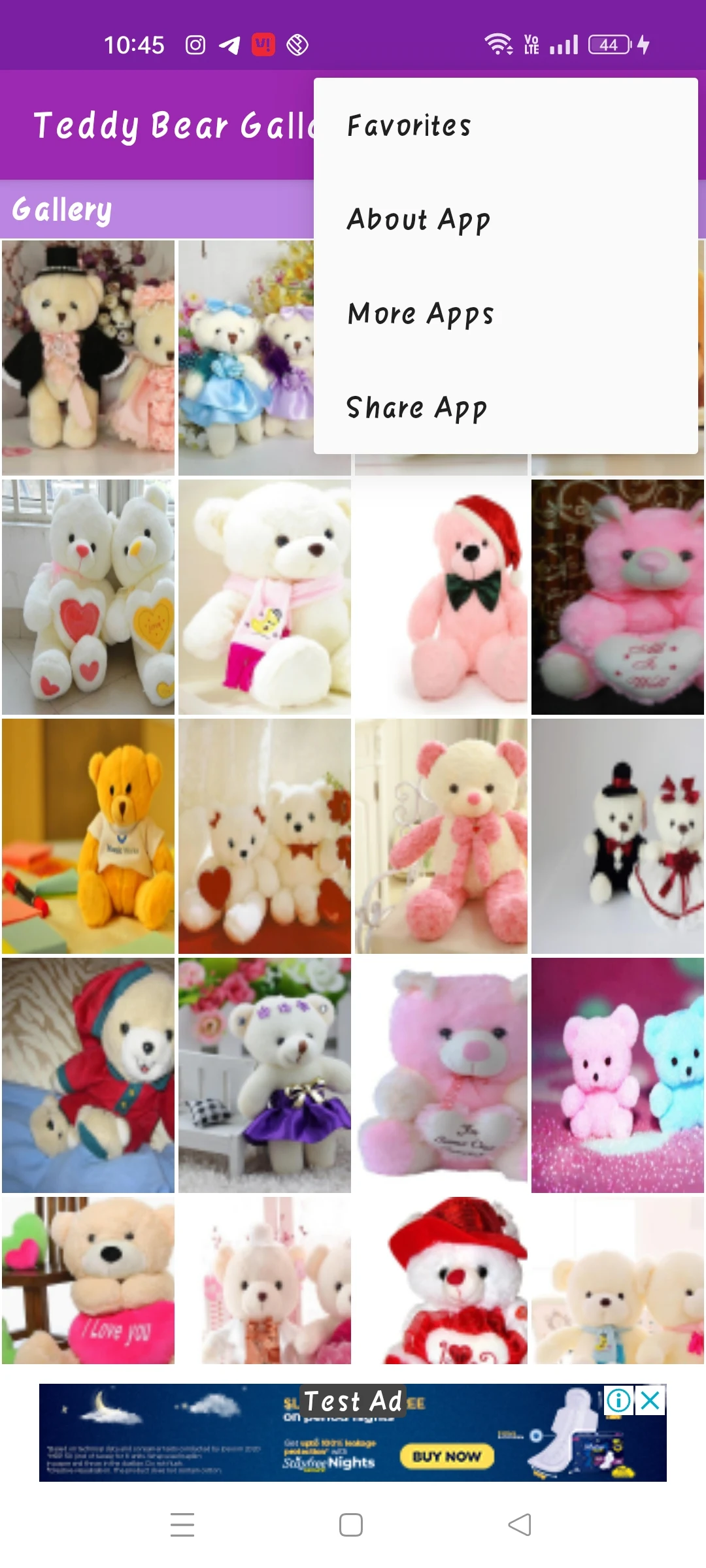 Teddy Bear Gallery is a beautifying app featuring teddy bear-themed wallpapers and images. Users can browse a variety of adorable bear images offline, including individual bears, couple bears, and mini bears. These images can be set as wallpapers or contact profile pictures, saved to an SD card, and shared via social media. Swipe to browse, zoom in and out, animated slideshows, and favorites enhance the user experience. While it contains ads and some sharing permissions, the overall design is welcoming and easy to use, making it a perfect fit for users who enjoy teddy bears and wallpapers.