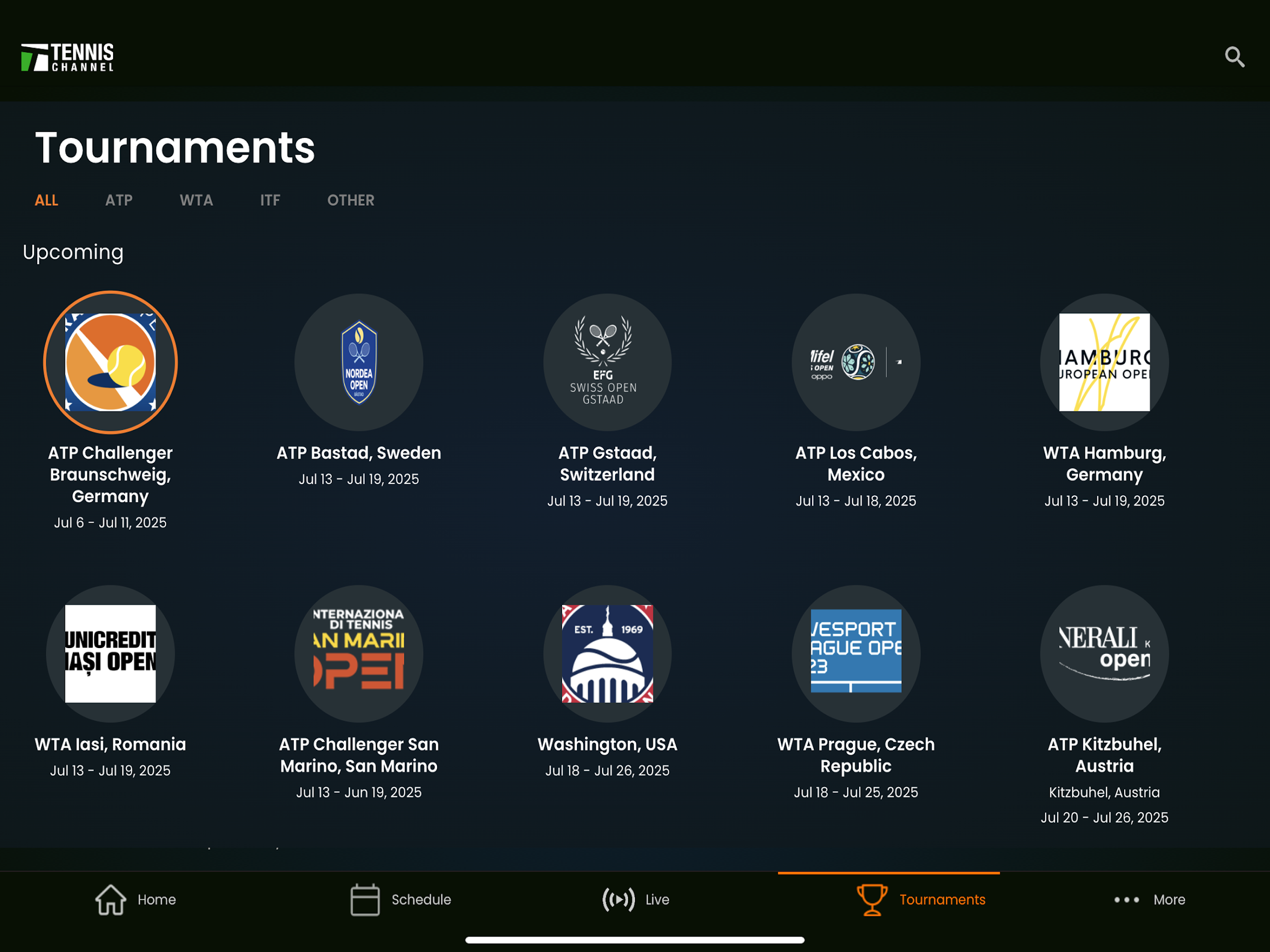 ◦ A: Typically, Grand Slam tournaments have their own separate broadcasting rights and are not included in this platform's core coverage of the ATP and WTA tours. The app focuses on the extensive calendar of tour events, as listed, while the Grand Slams are usually accessed through other network providers.