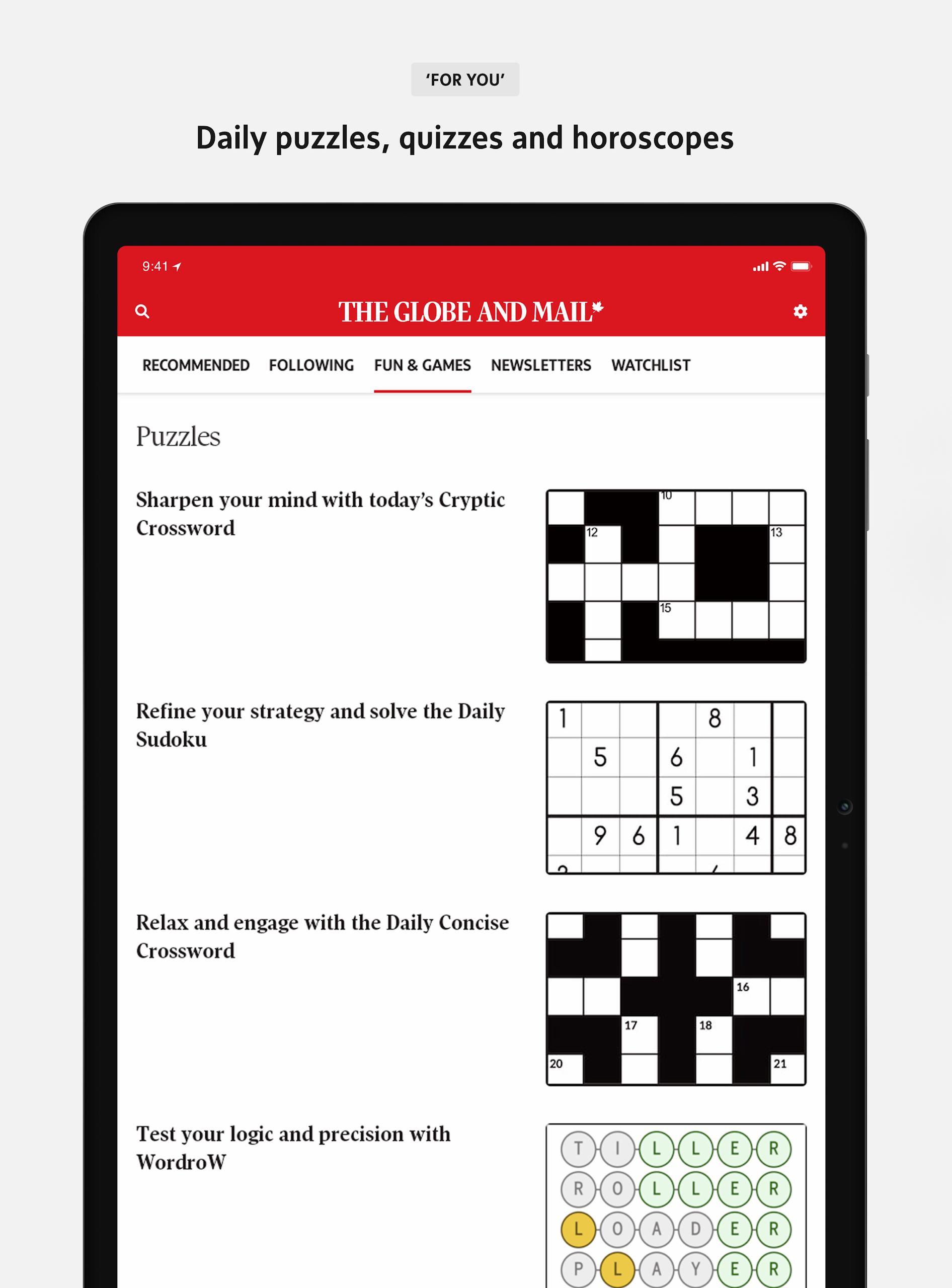 - Log in at globeandmail.com/globe2go.