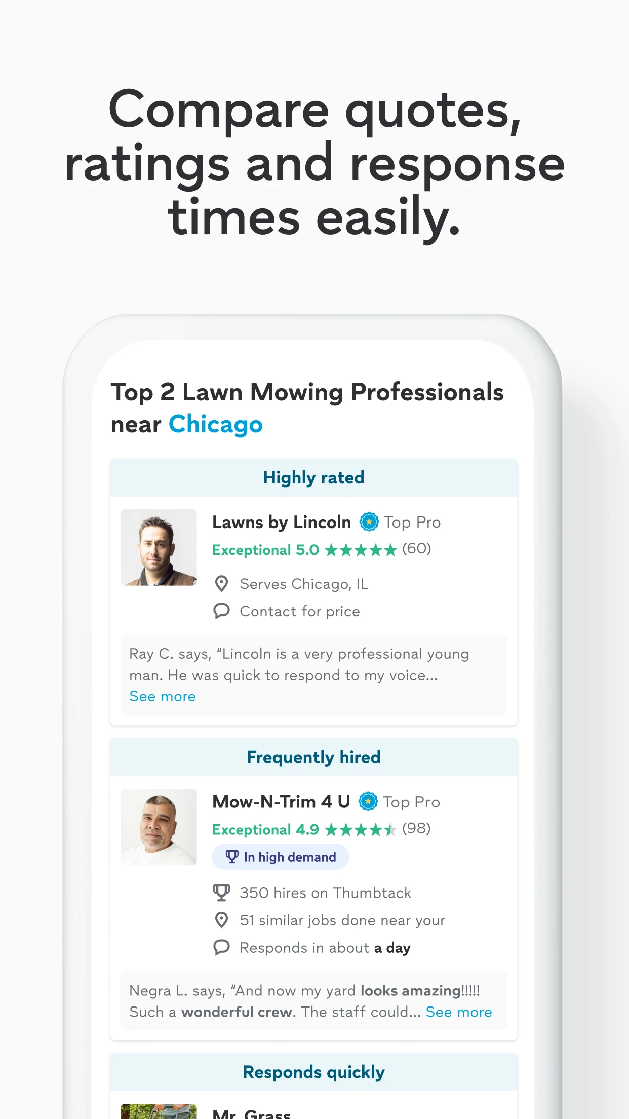 With other types of advertising, you have to invest up front and hope your business gets seen by the right people. On Thumbtack, you pay after a customer reaches out. That means they saw your business and liked what they saw before contacting you.