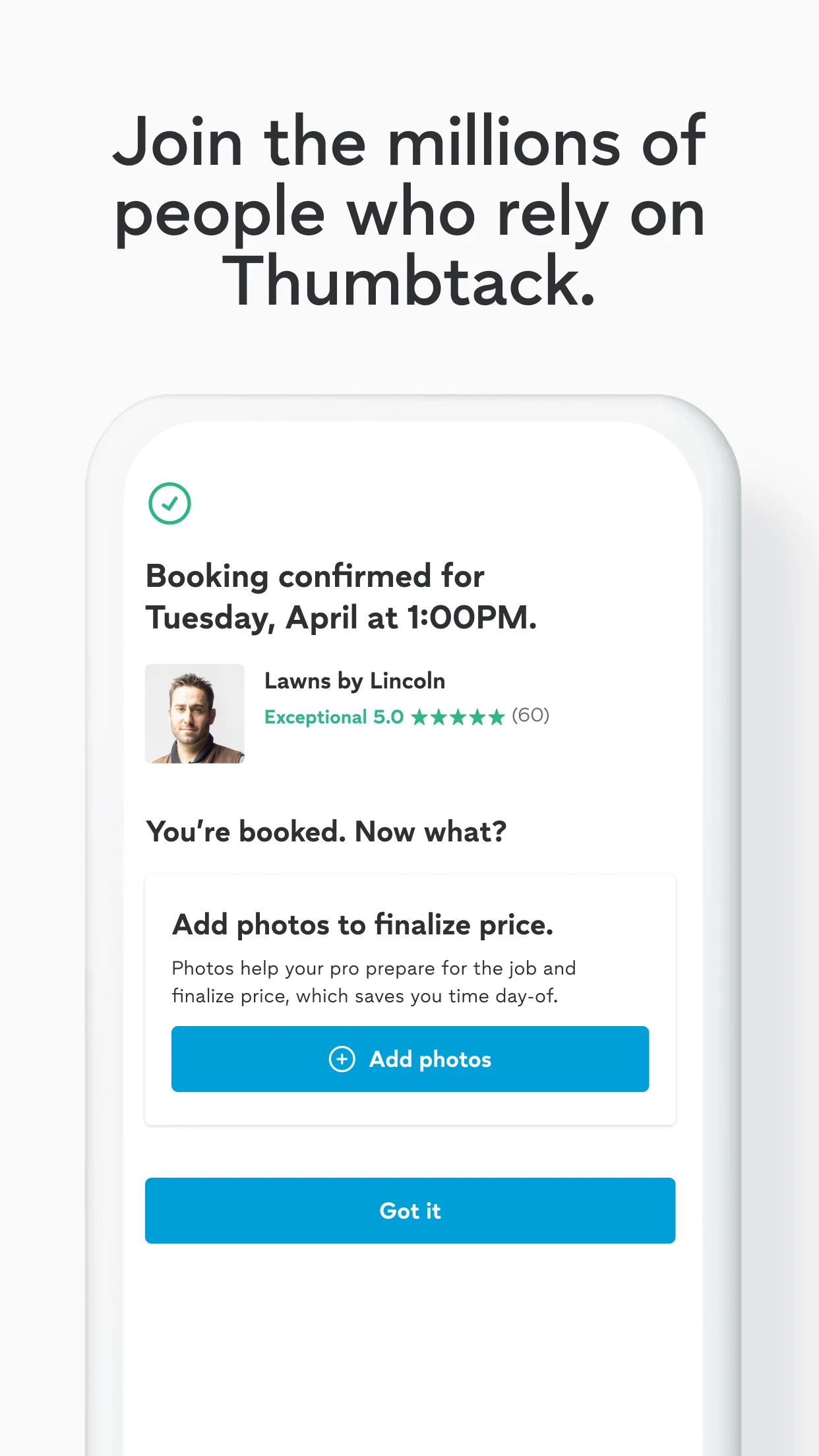 There are thousands of customers on Thumbtack each day. And they’re here to get jobs done.
