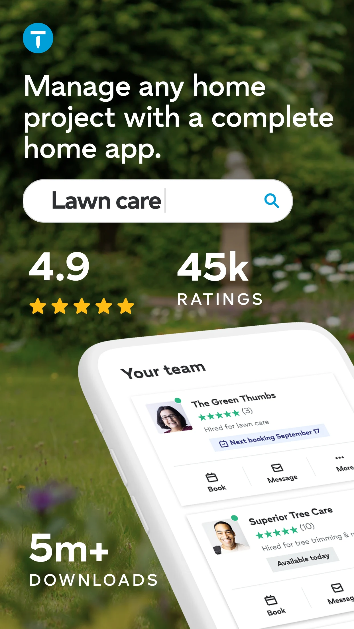 ► Thumbtack identifies professionals and household services, presenting you with a list of available experts in your region. You can readily identify the most suitable one for your home project and schedule a service directly within the app.
