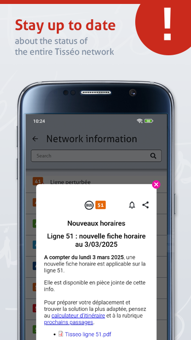 - Network updates and alerts: Stay informed about new lines, route changes, traffic issues, or construction work affecting the Tisséo network. Receive notifications about major disruptions.