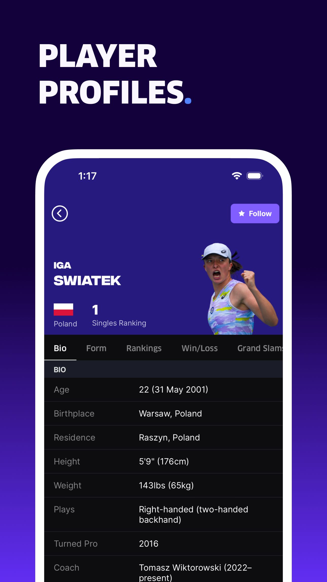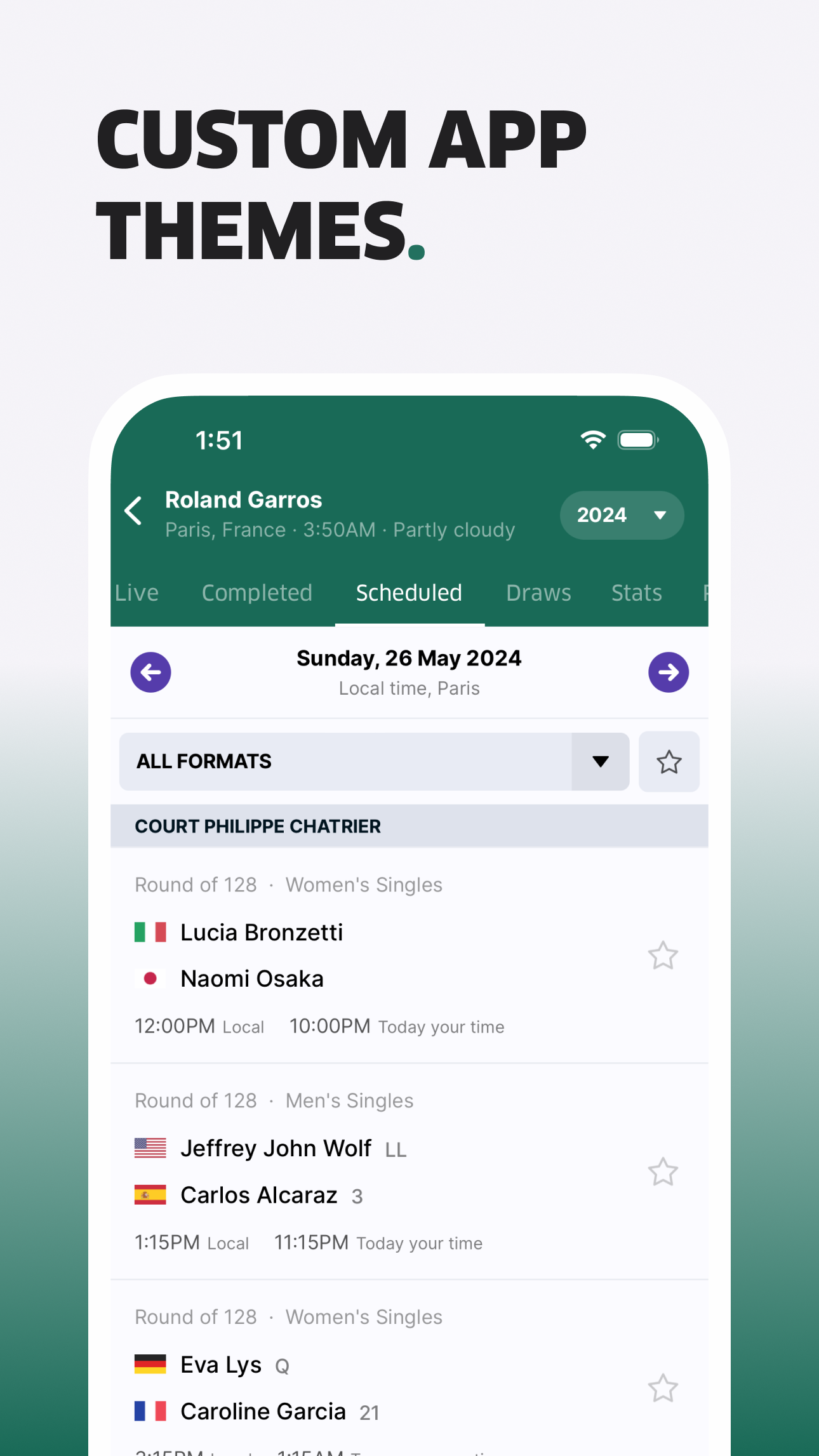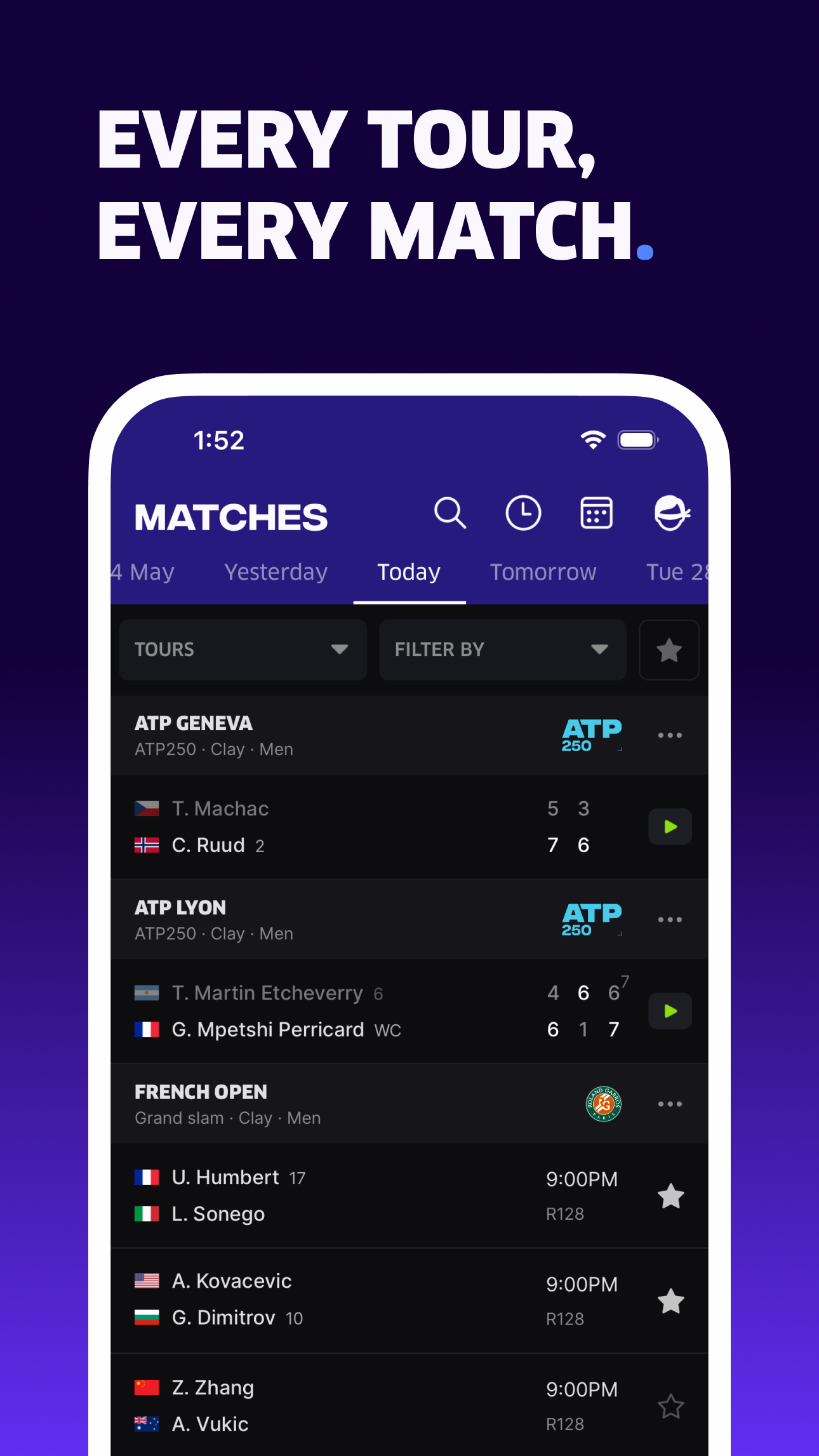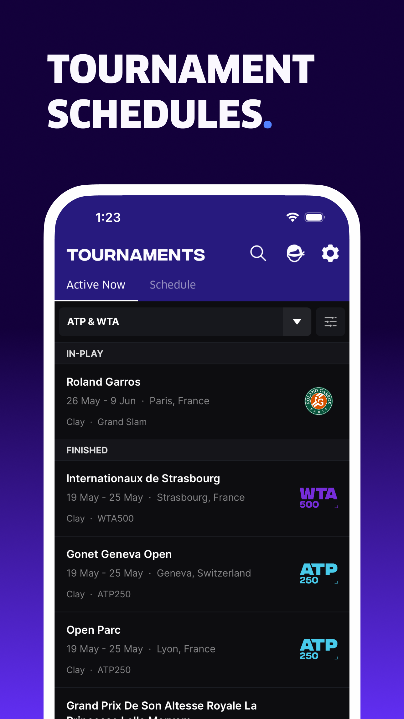 If you're a fan of players like Roger Federer or Rafael Nadal, or have a preference for either ATP or WTA tennis, customize your experience by selecting your favorite players and matches to receive relevant scores, news, and schedules.