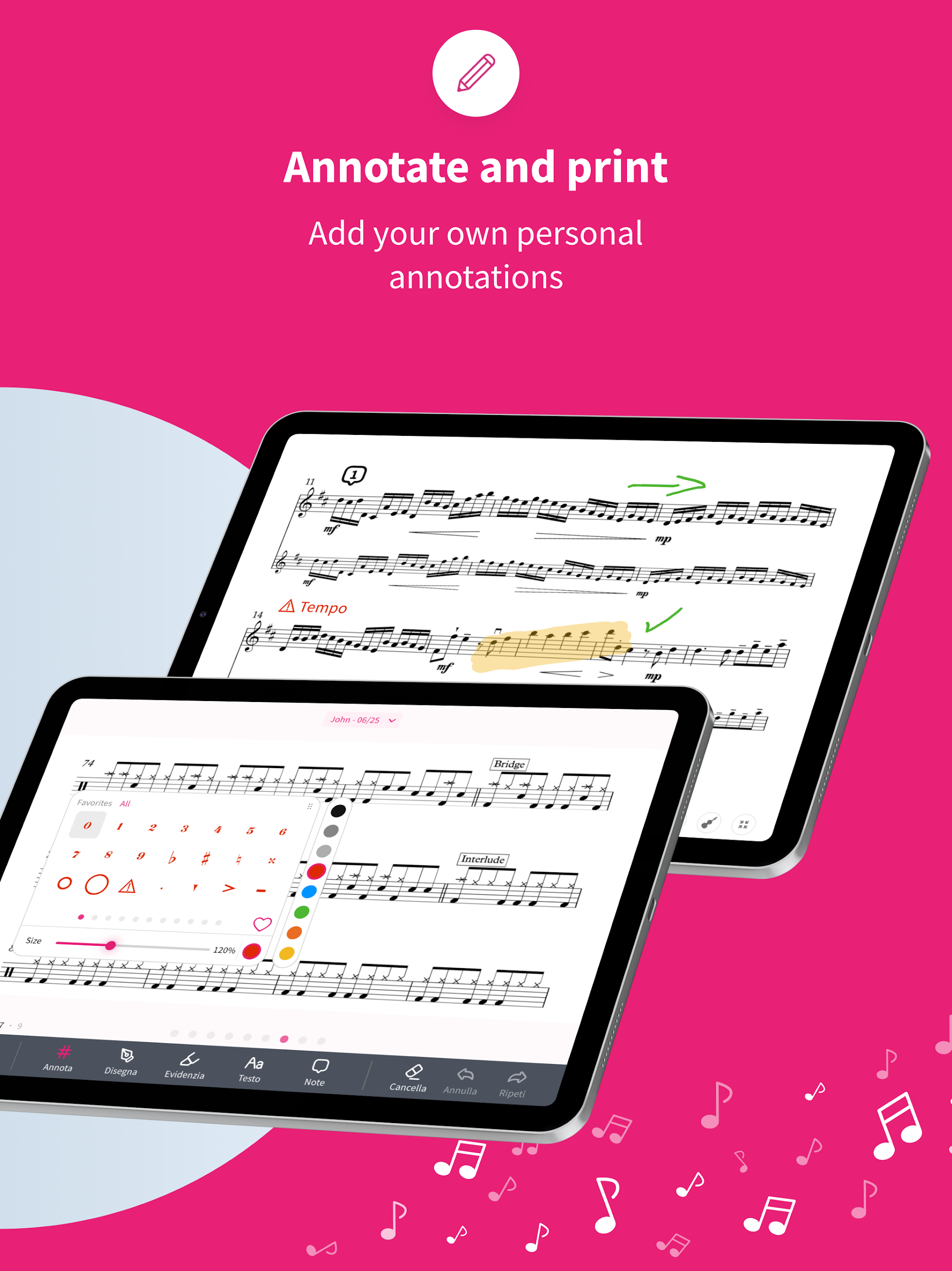 • Capability to add personal annotations on the score