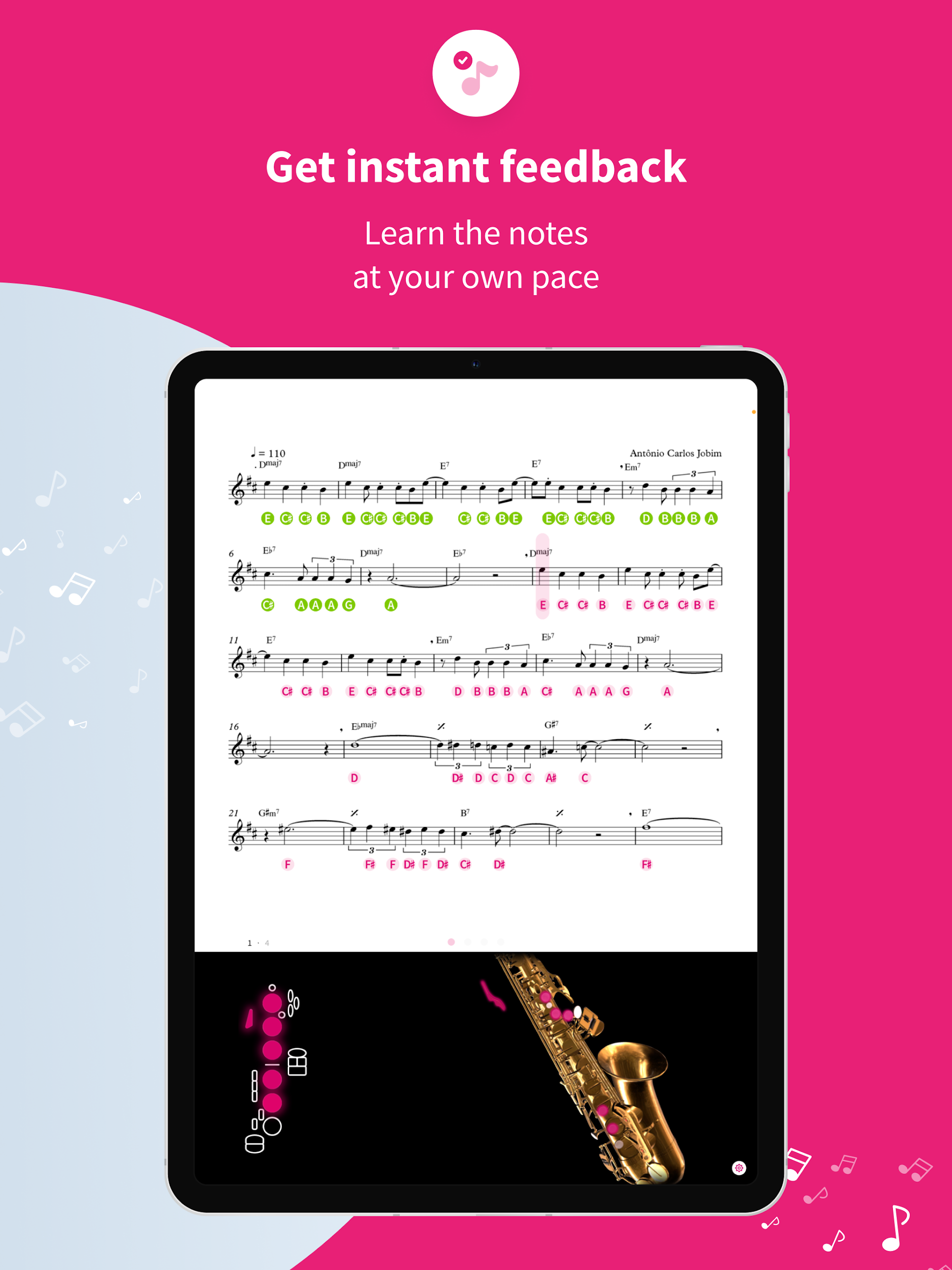 • Ability to adjust the tempo for practice according to your level