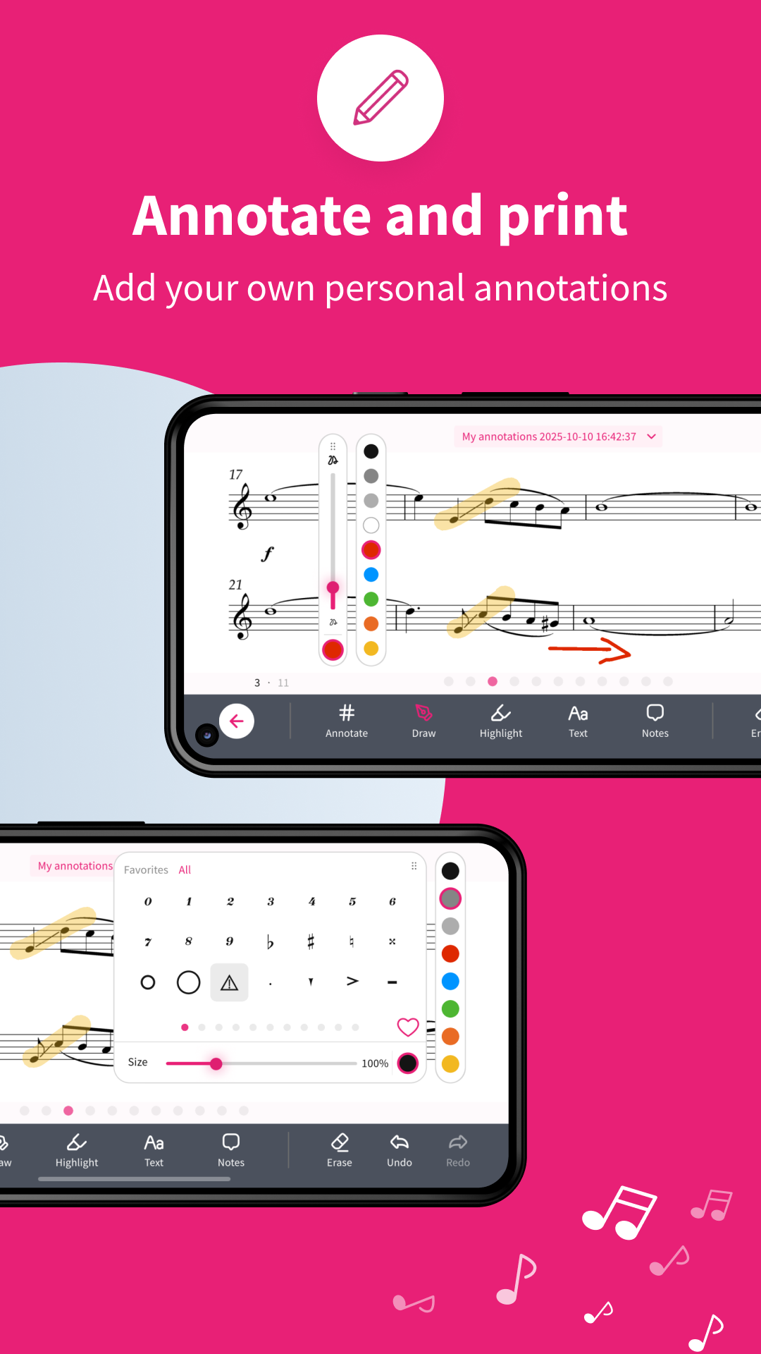 • Print scores complete with your annotations