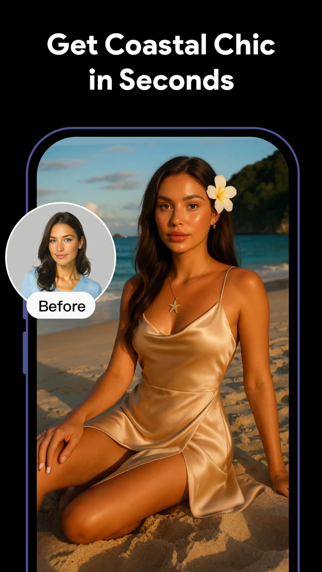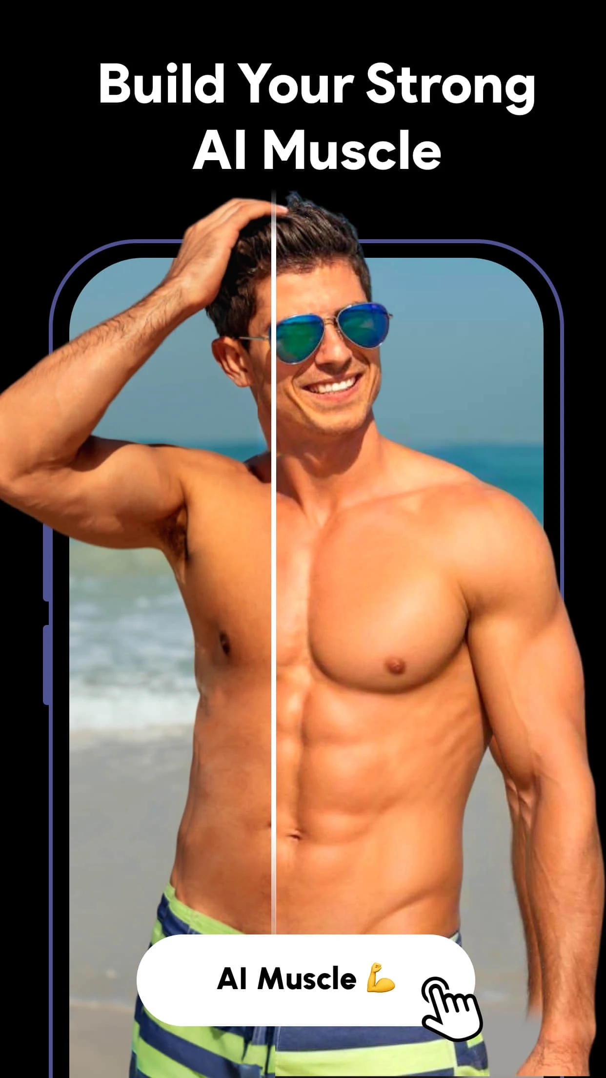 Sun’s out, confidence up! Warmer days mean more skin in the game–but if body worries are holding you back, our AI Muscle feature has your back (and abs)! No over-the-top bulk, just natural, well-defined muscle lines that keep you looking sharp and confident in every shot. No gym? No worries! Snap, flex, and shine with ease!