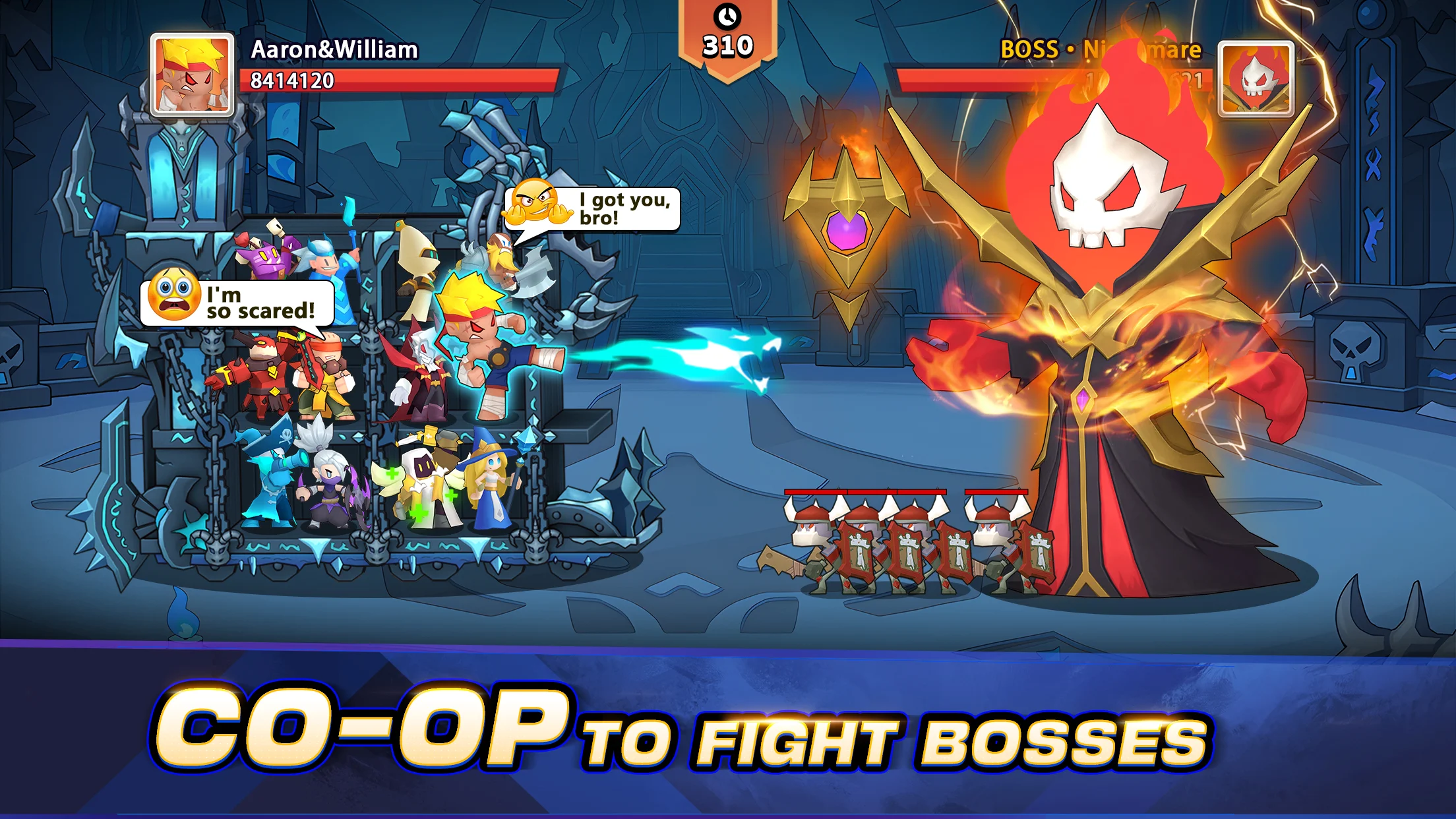 Take on over 300 waves of monsters alongside formidable bosses in Co-op and Exhibition modes! In Co-op, invite friends to join forces and devise the most effective strategies together! Each boss possesses unique traits and powers; finding the best approach to defeat them can earn you prestigious rewards, including an S-tier hero and special Siege Tower skin!
