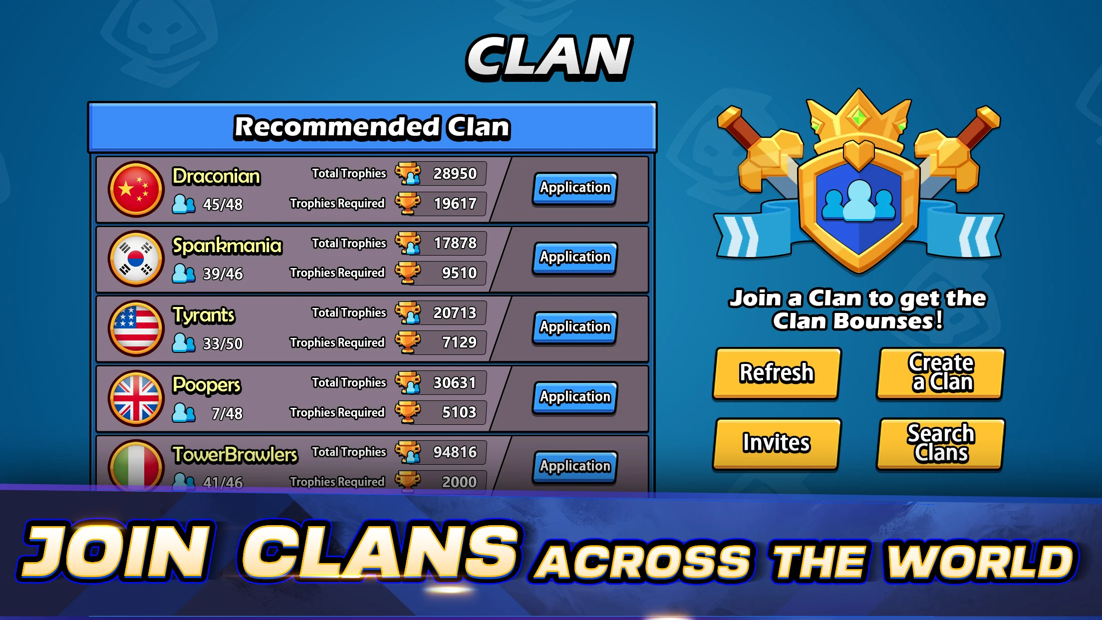 Tower Brawl innovatively combines aspects of gacha mechanics, auto chess, tower defense, and 1v1 real-time combat. You can initiate a battle in just 3 seconds! Design a strategic deck of 10 heroes to use in combat, and enhance both your heroes and Siege Tower in real time by overcoming foes or unlocking mysterious chests filled with surprises! During battles, you can modify your lineup dynamically and upgrade gear through random drops to outmaneuver your opponent and rise as a legendary victor!