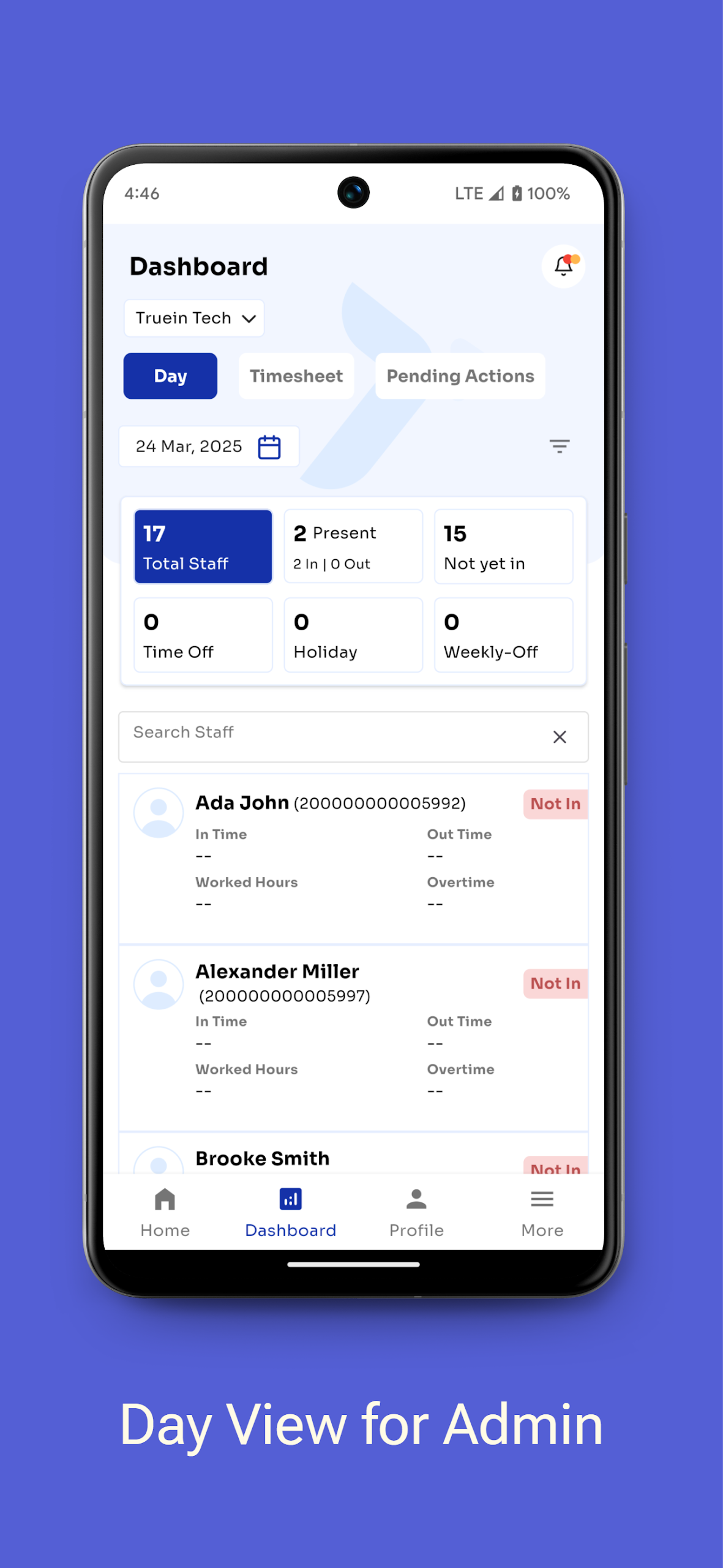 Truein is a robust cloud-based software designed to meet the needs of comprehensive cleaning staff scheduling and time attendance. As a mobile-first solution, it can meet the unique needs of the cleaning industry, streamlining scheduling processes and enhancing communication. Cleaning companies use valuable insights for business optimization.