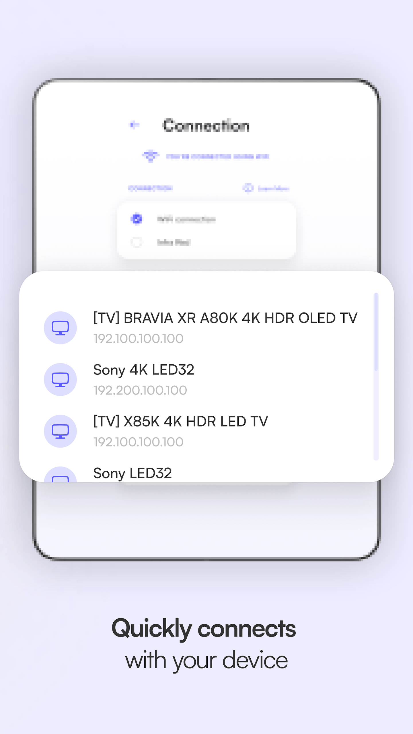 ✔ Utilize the Discovery feature to see a list of accessible Sony Bravia, Sony Google TV, and Sony Android TVs connected to the same network as your Android device.