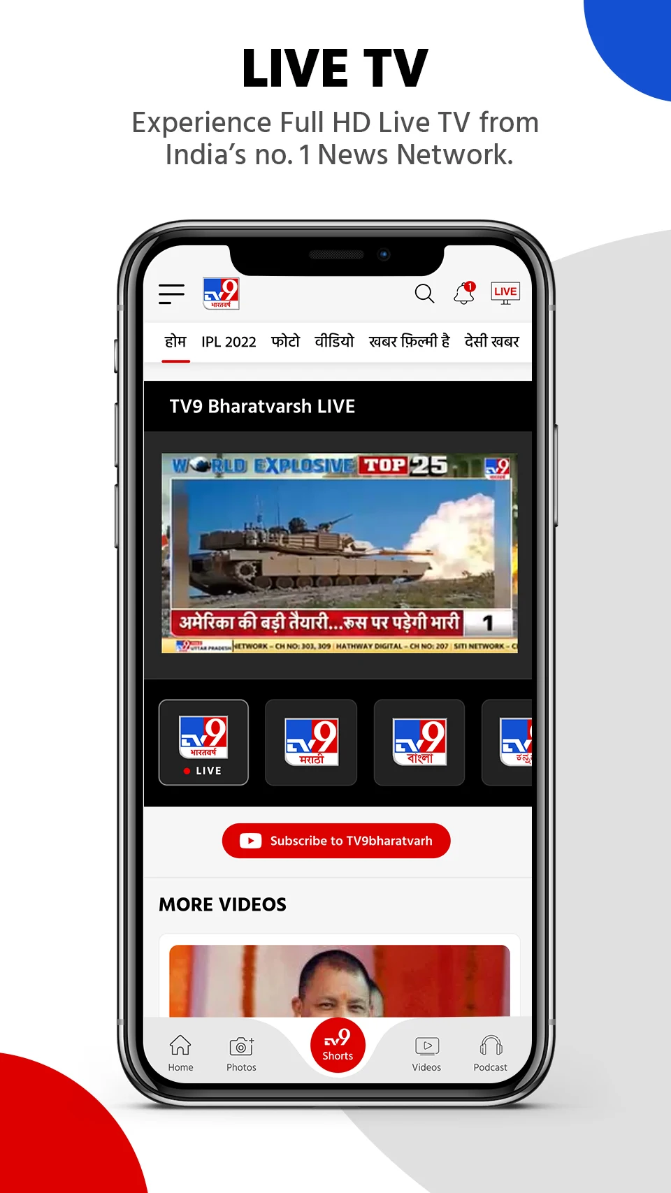 TV9 Bharatvarsh: Tune in to LIVE Hindi news (हिंदी न्यूज़, हिंदी समाचार) at any time using the TV9 Bharatvarsh Hindi news application.