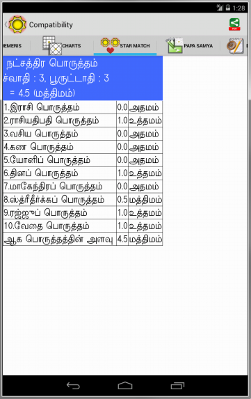 Besides producing horoscope reports, the app also allows for the calculation of marriage compatibility, identification of favorable timings for events like weddings and housewarmings, alongside other astrological computations. It supports multiple languages including English, Malayalam, Hindi, Tamil, Kannada, and Telugu.