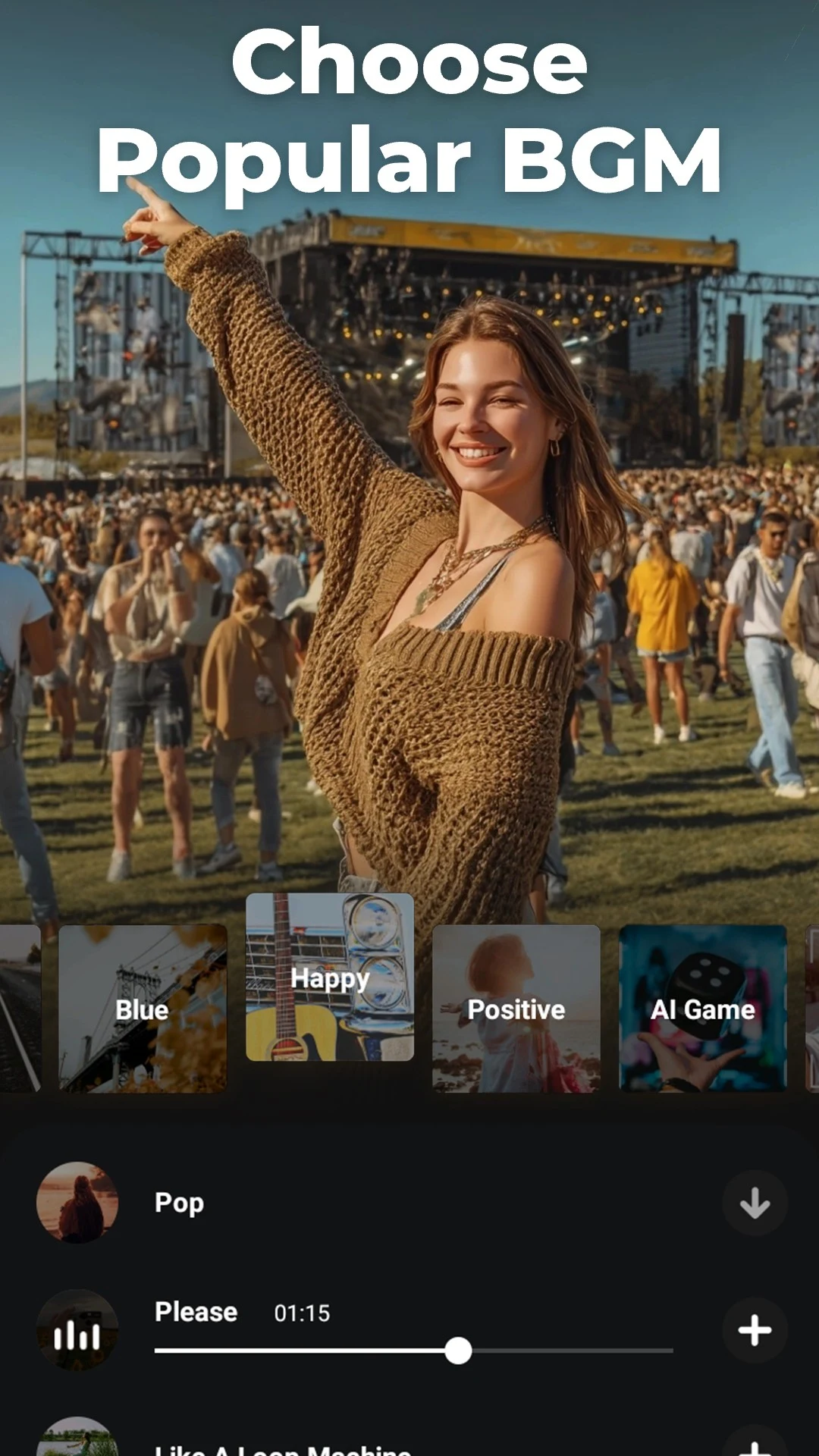 - Ready-Made Templates: Choose a tempo and template, upload video clips or photos, and effortlessly create trendy videos.