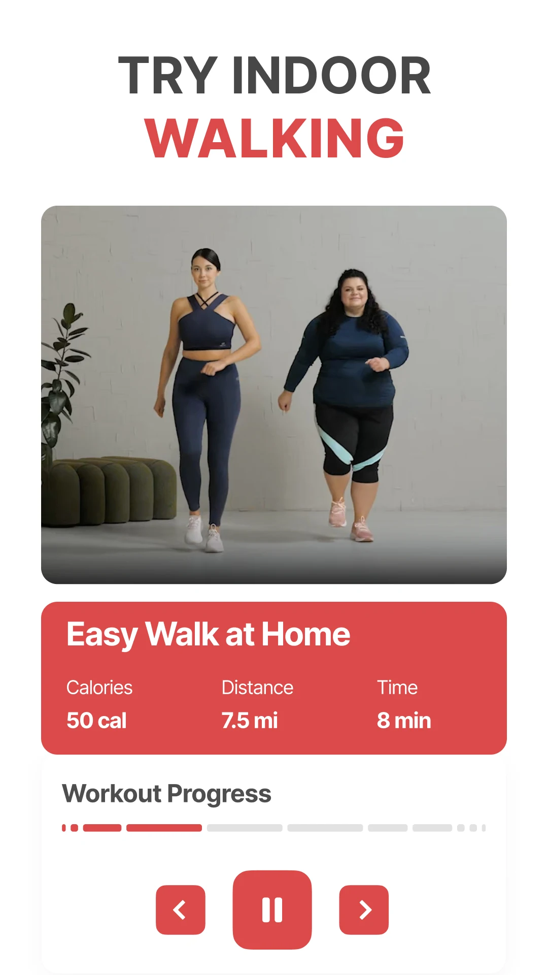 Receive a personalized walking schedule based on your BMI and activity level to kickstart your effortless weight loss journey. Keep yourself motivated by tracking your steps, calories torched, and distance covered using the intuitive walking tracker featured in the app.